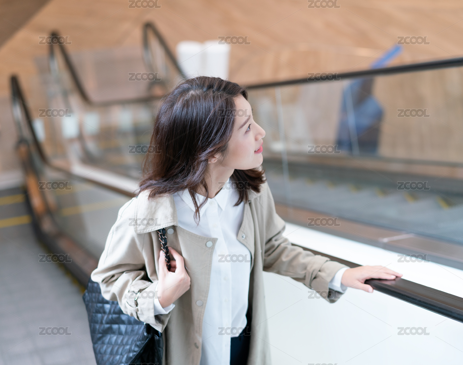 手扶梯上的女士