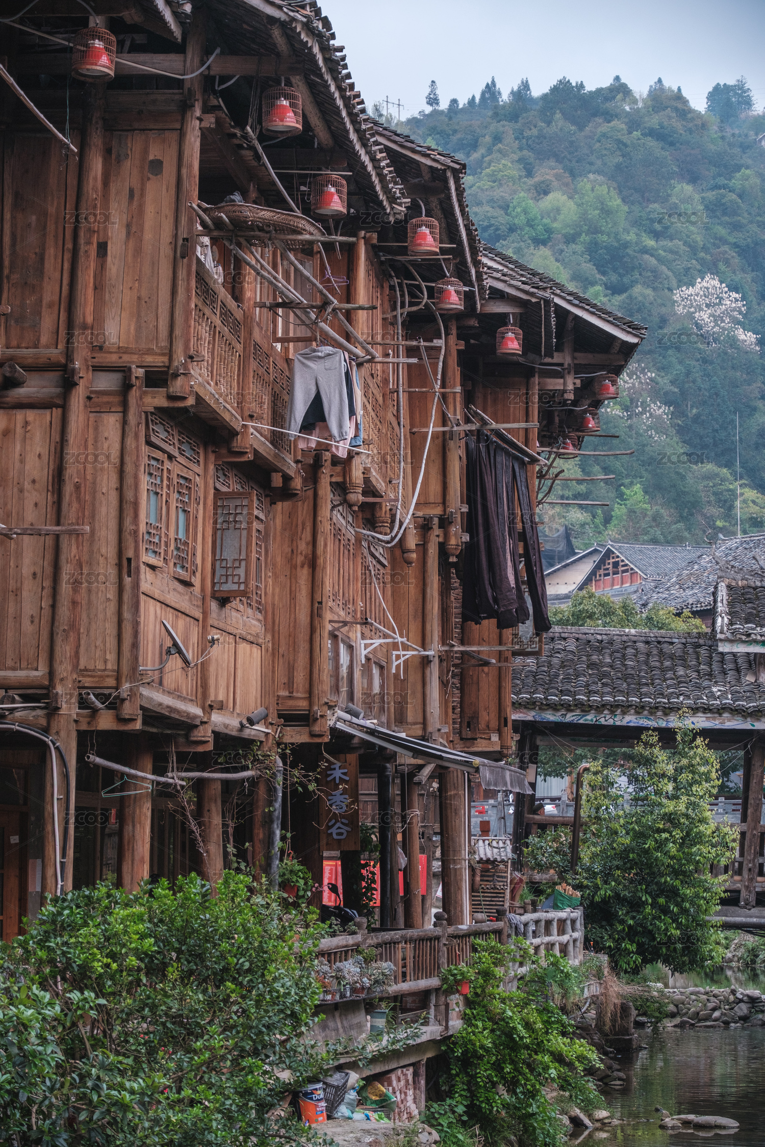 中国西南地区吊脚楼民居风光