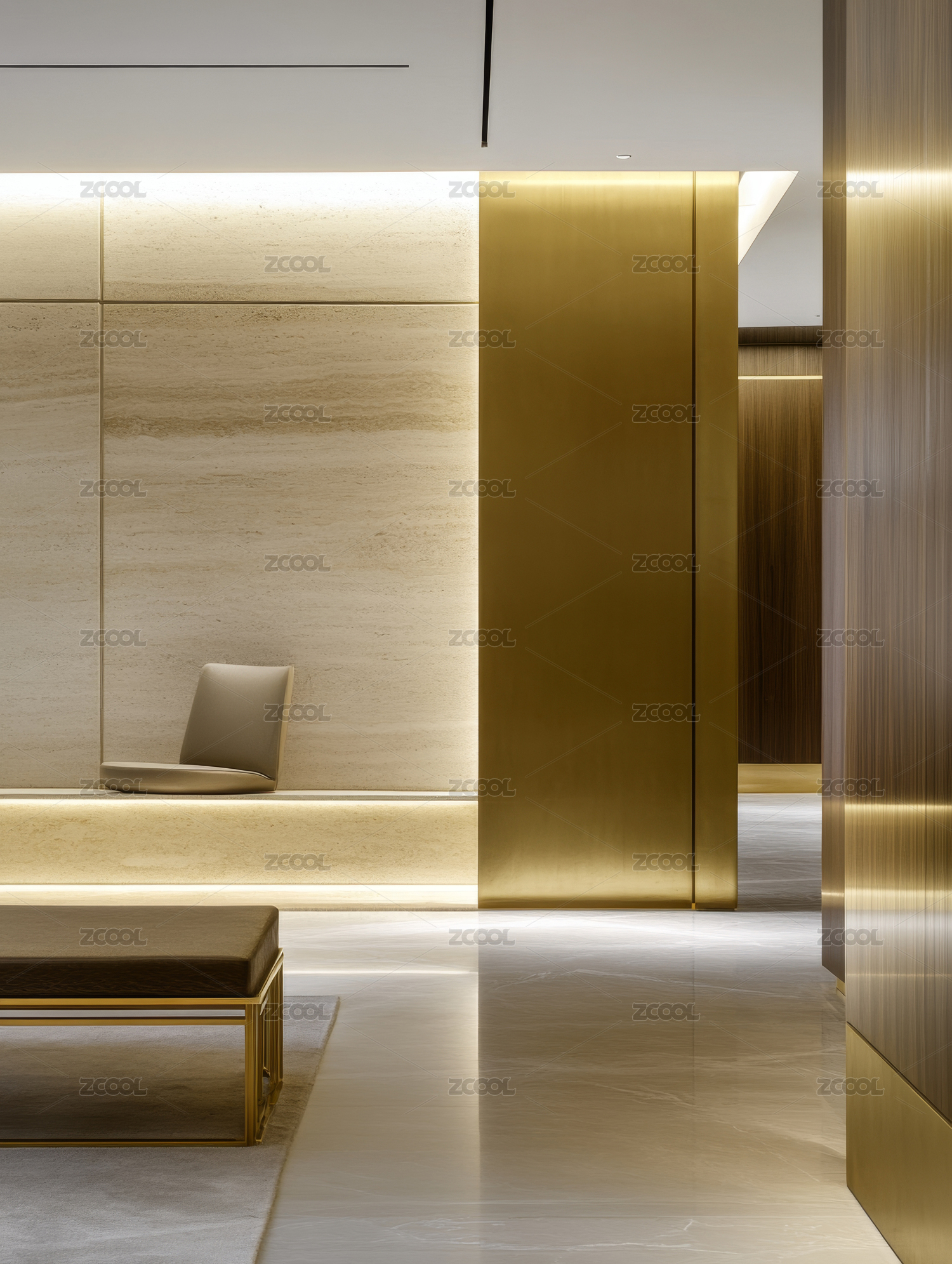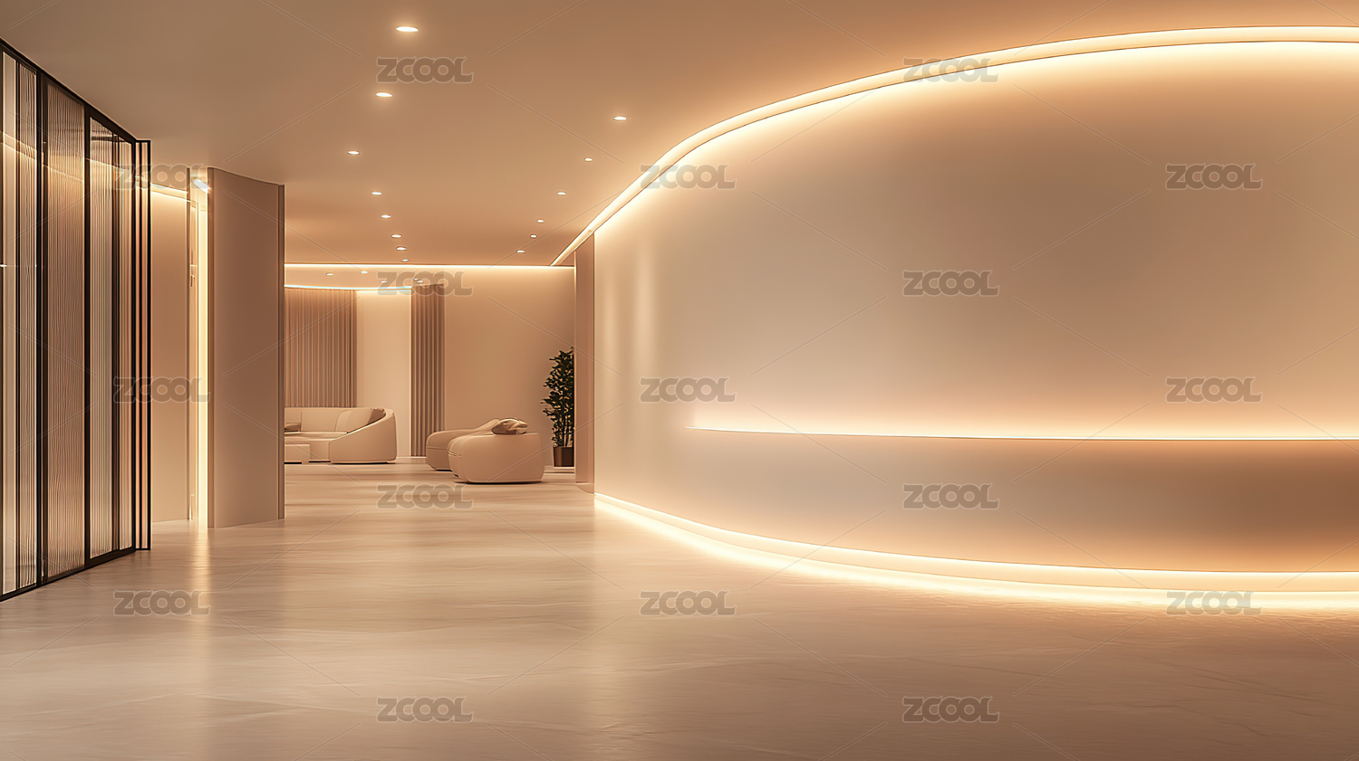 温暖现代休闲空间:曲线木墙与舒适座椅