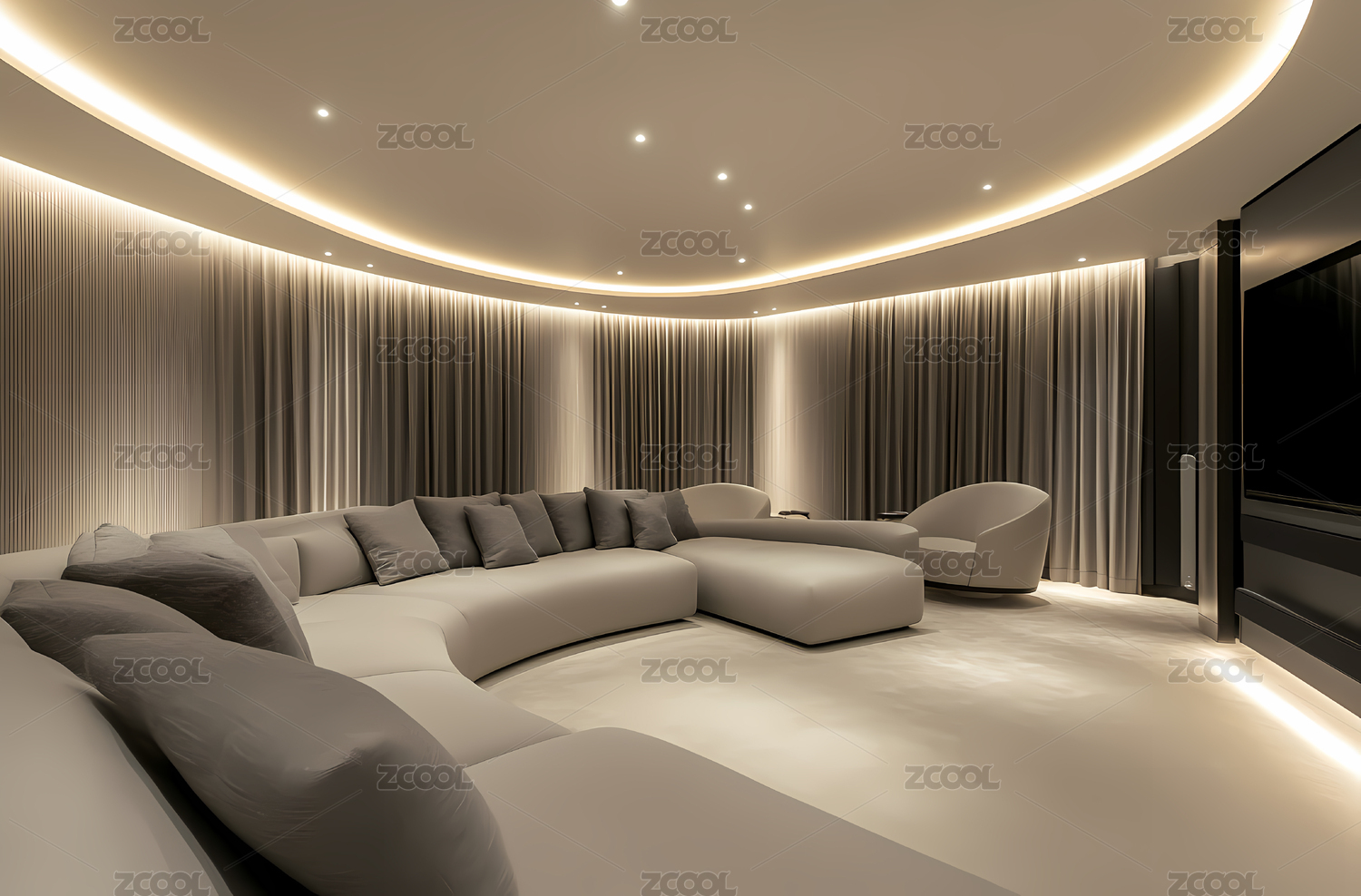 现代,室内空间,白色,光滑材质,大型沙发,浅米色,奶油色,简洁,设计,高大墙壁
