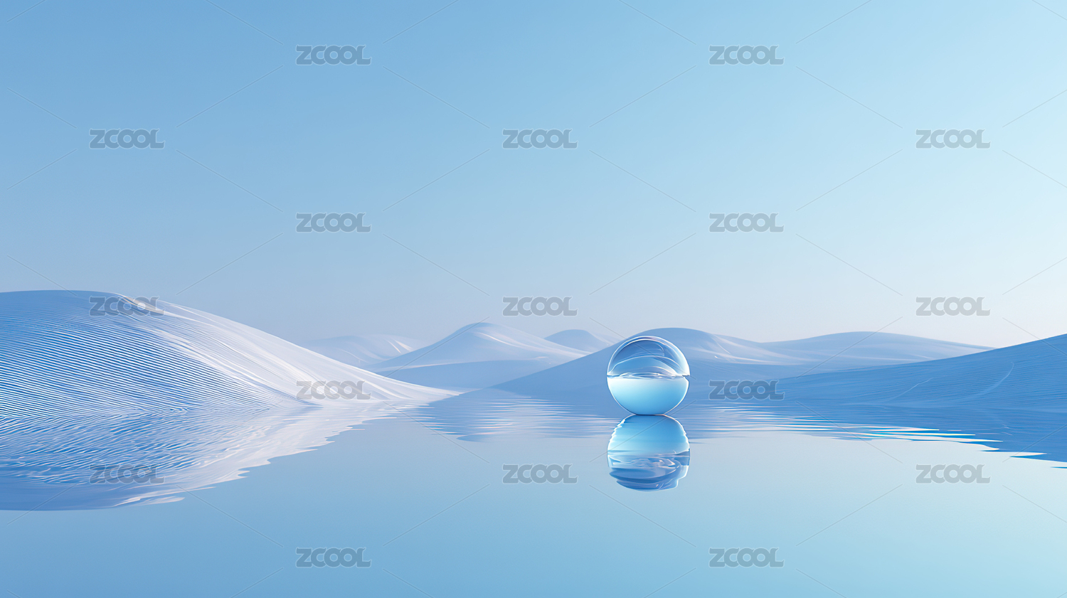 圆形,椭圆形,表面光滑,光泽,气泡,蓝色,山脉,背景,简约,化妆品展示