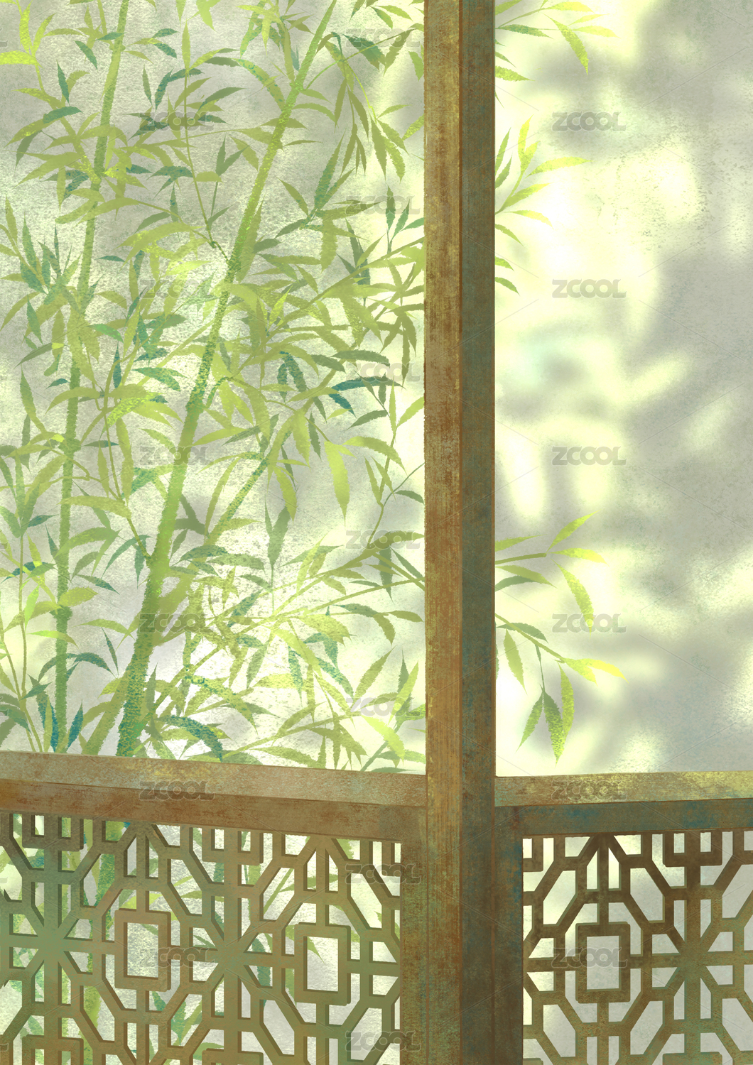 古风门窗插画背景