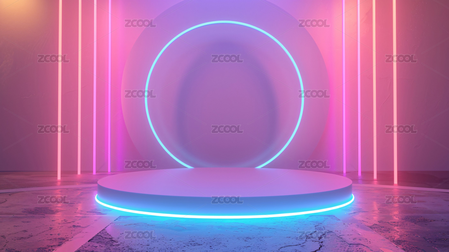 紫色平台与霓虹灯柱