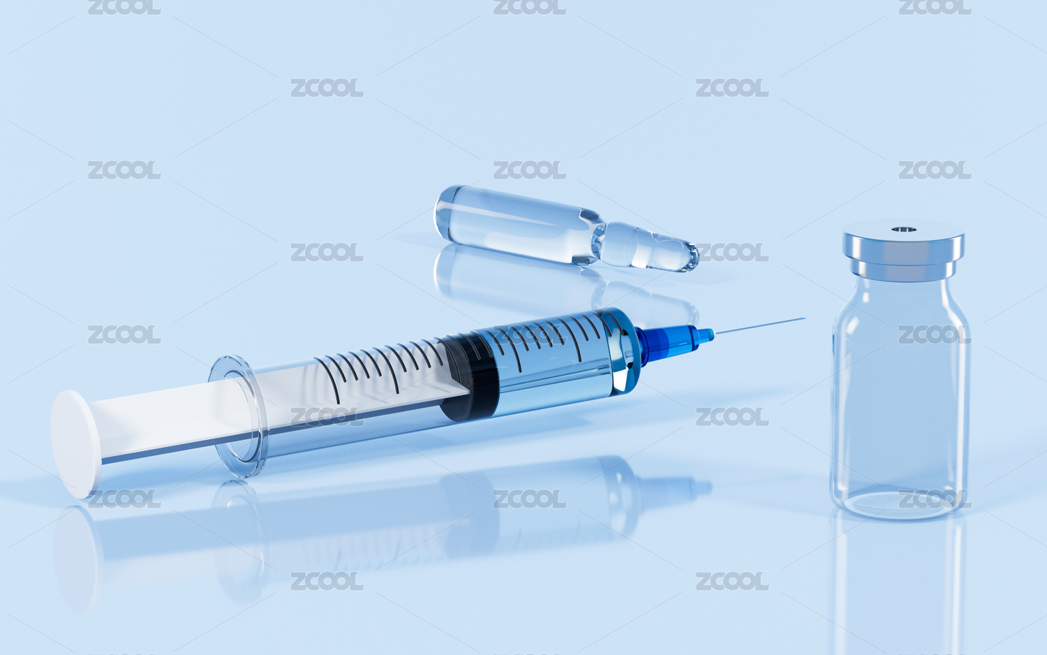 医疗题材的注射器和药水瓶的场景,3d渲染