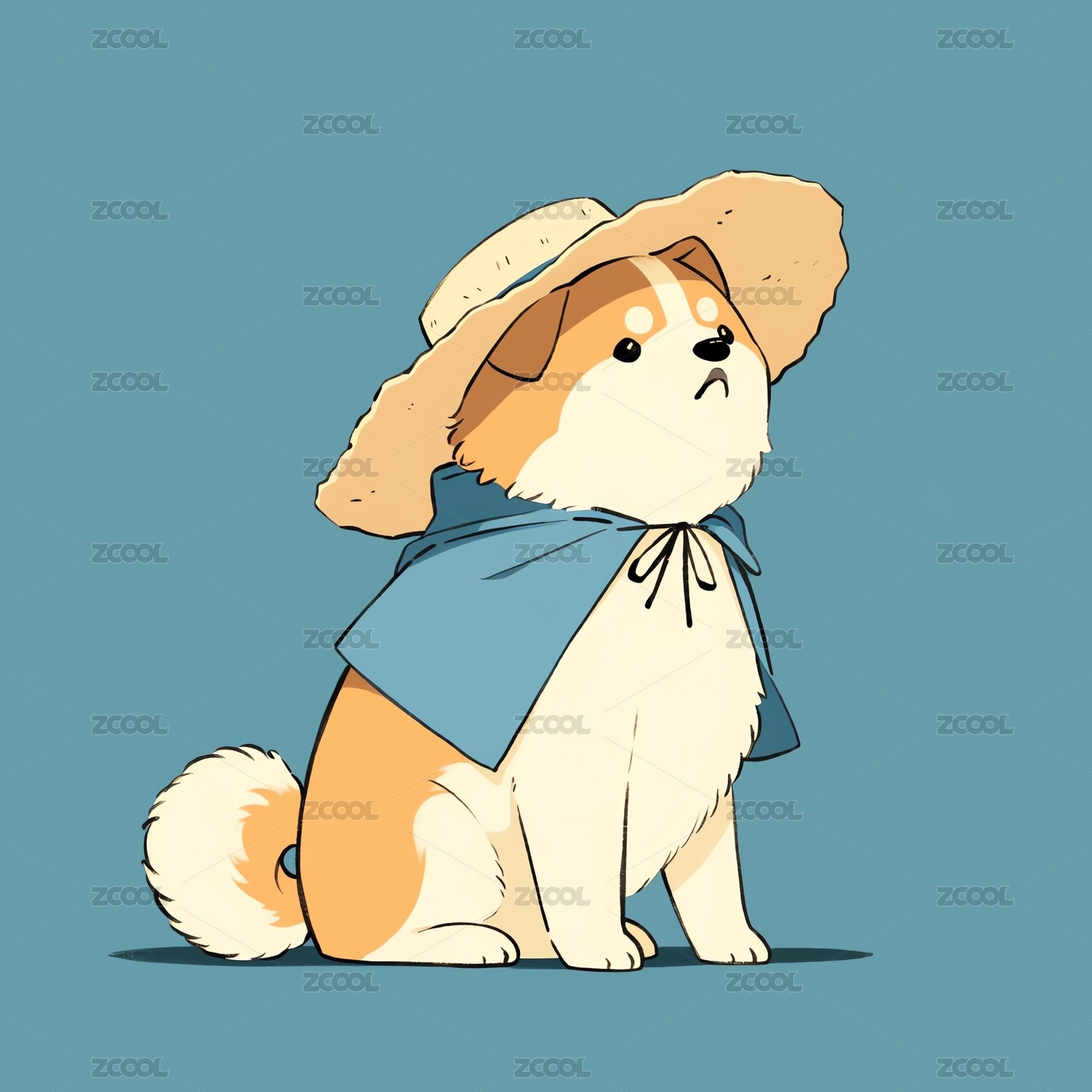 可爱,卡通,真实动漫风格,戴帽子,小狗