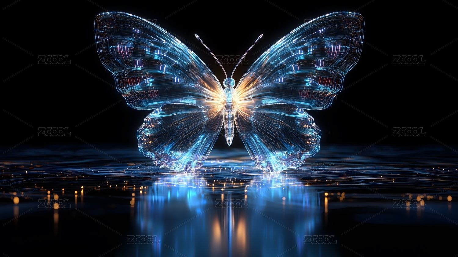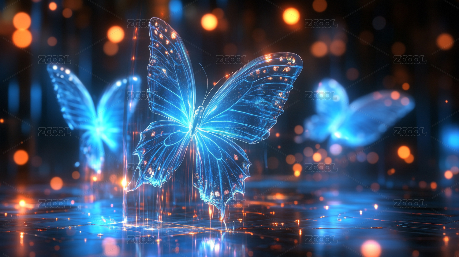 蓝色光影中的数字蝴蝶