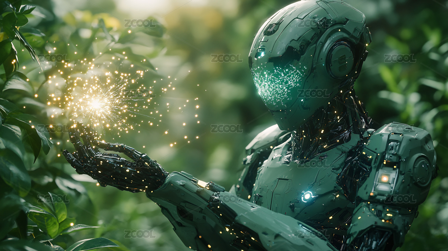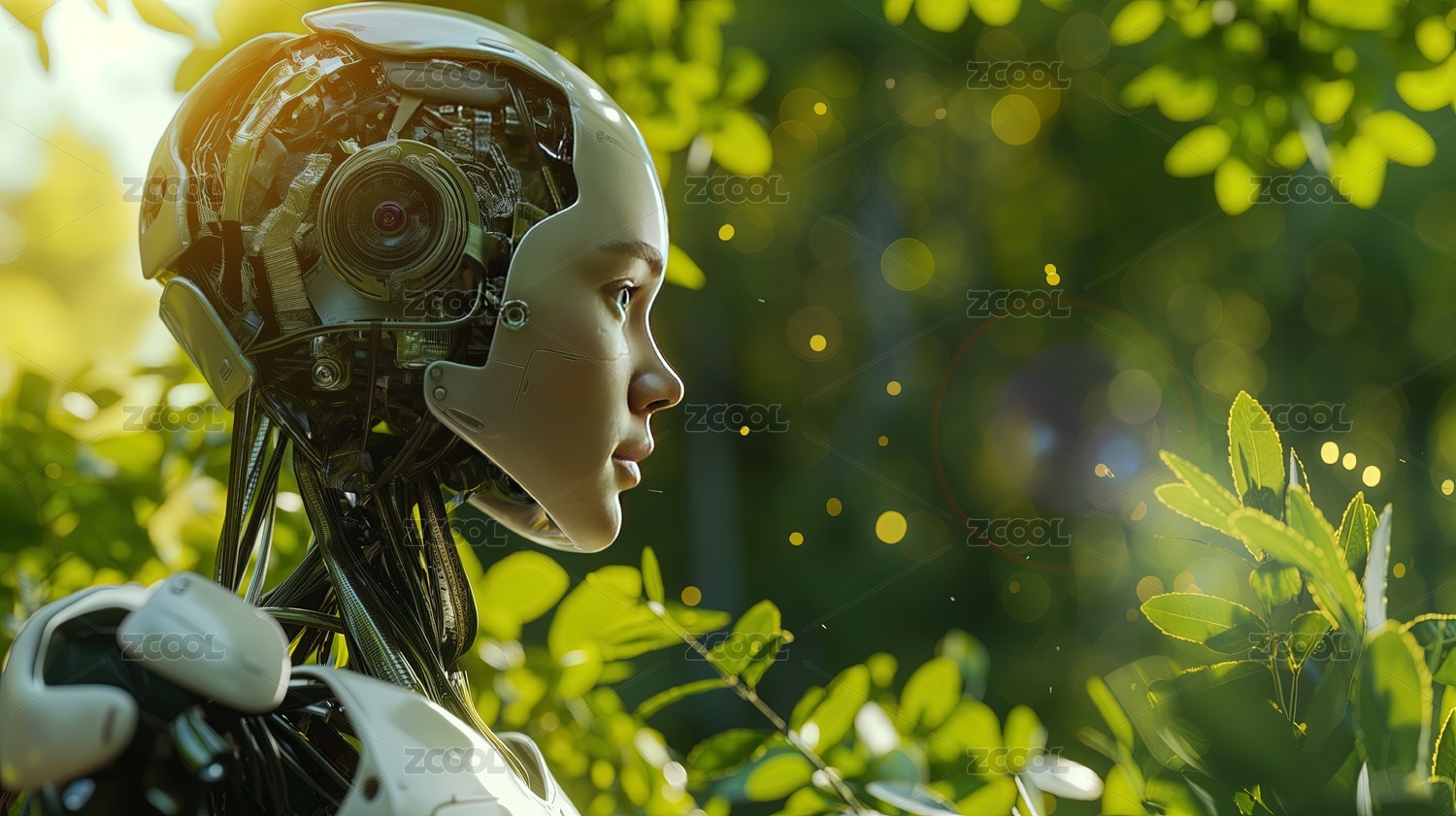 机器人,自然,植物,绿色,机械,科技感,未来感,科幻,环保,生态