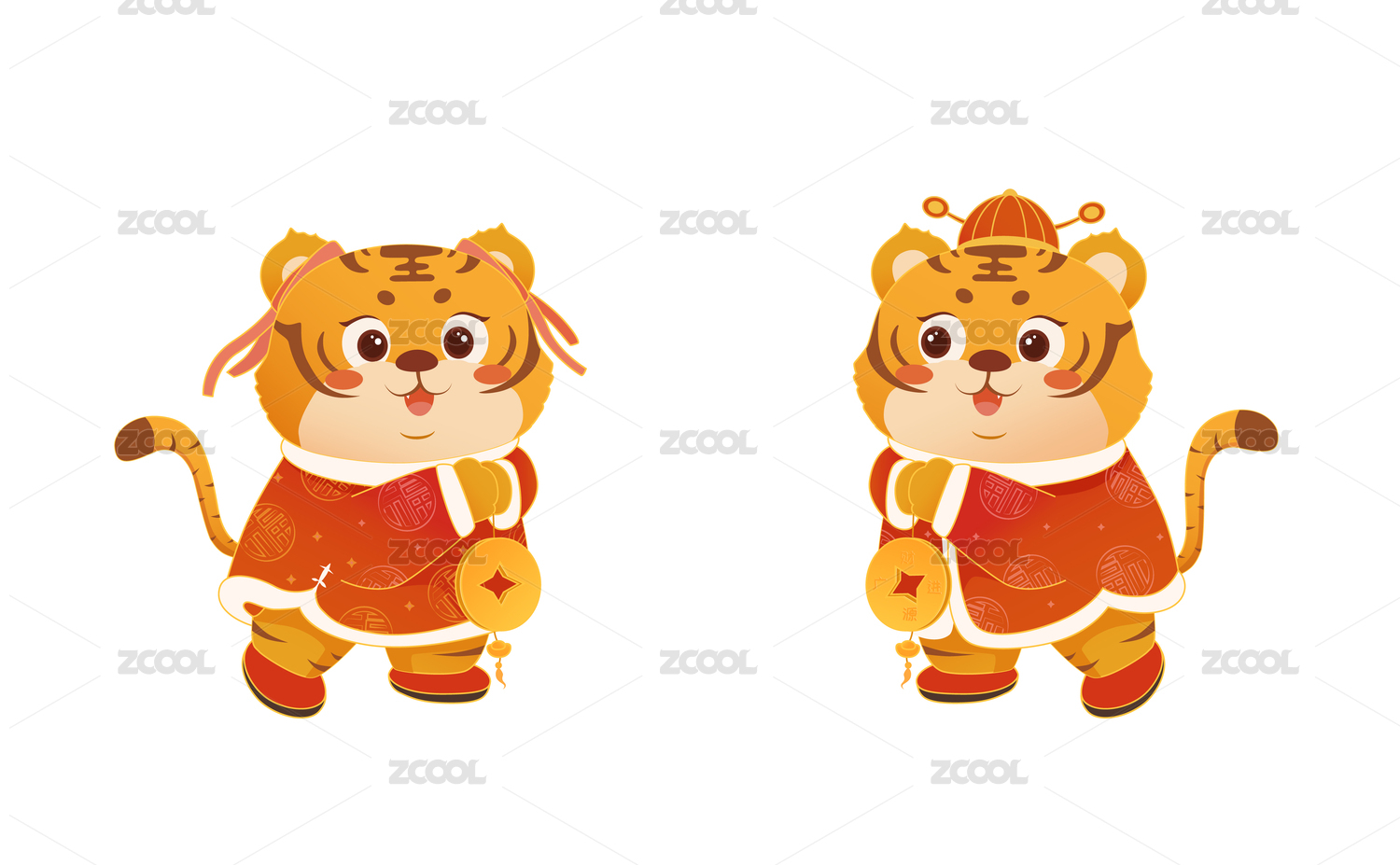 国潮可爱卡通老虎ip形象招财春节矢量插画