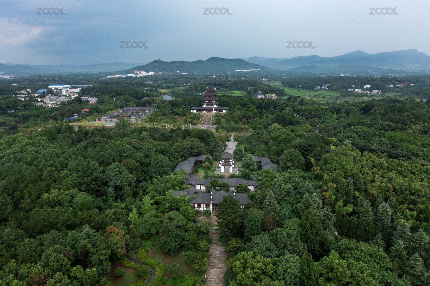 航拍四川省德阳市罗江县白马关庞统祠景区
