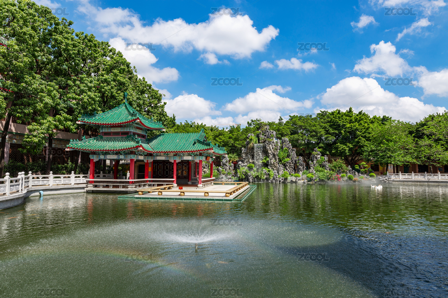 广东省广州番禺宝墨园岭南园林风光