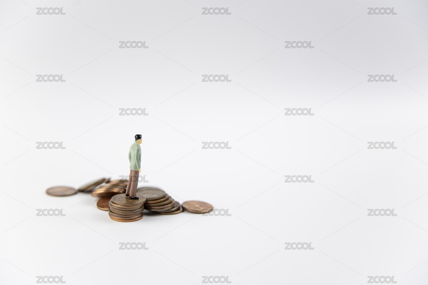 白背景上奔跑的微缩人偶跑向一排逐渐升高的