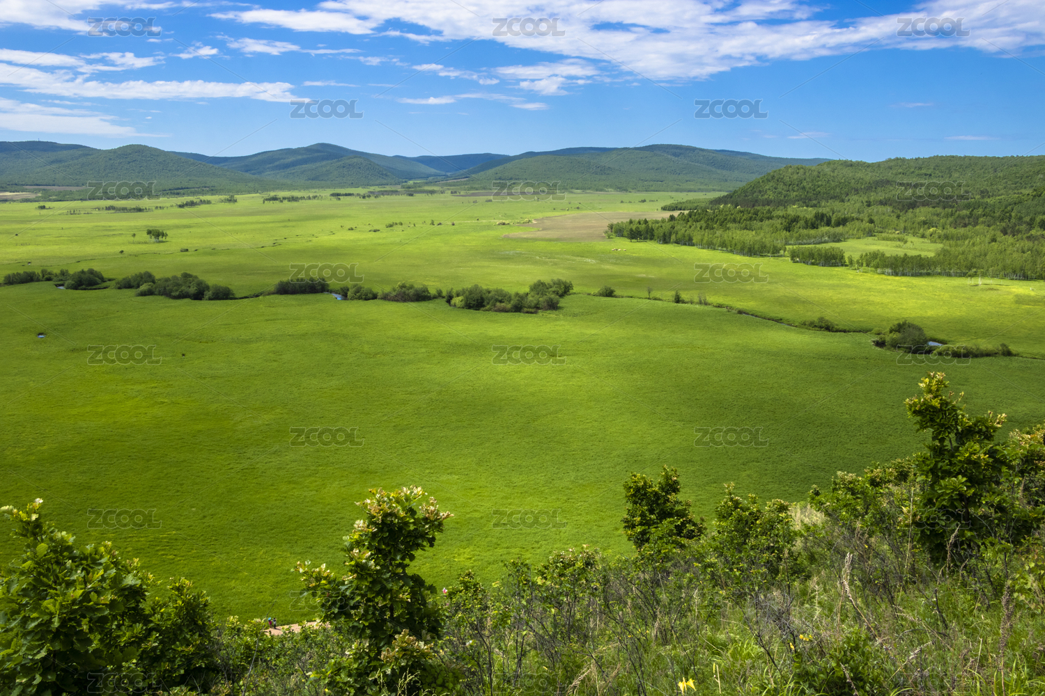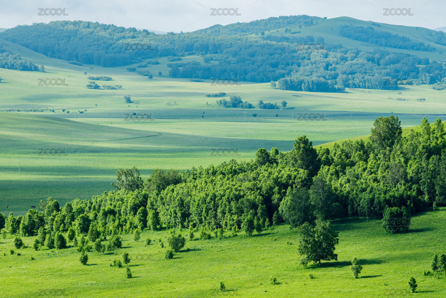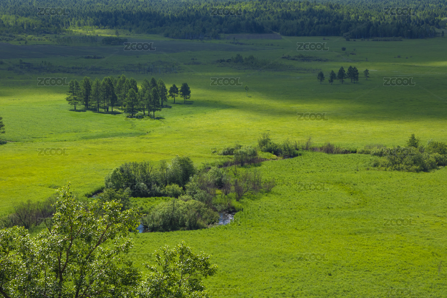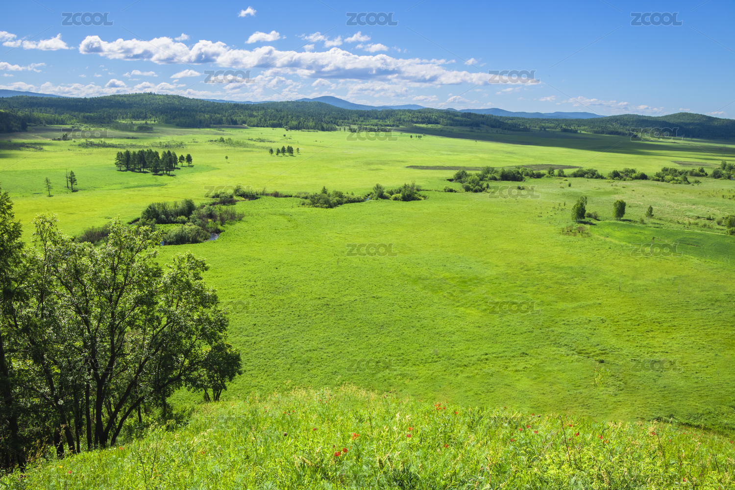 中国大兴安岭绿色的山林与草地