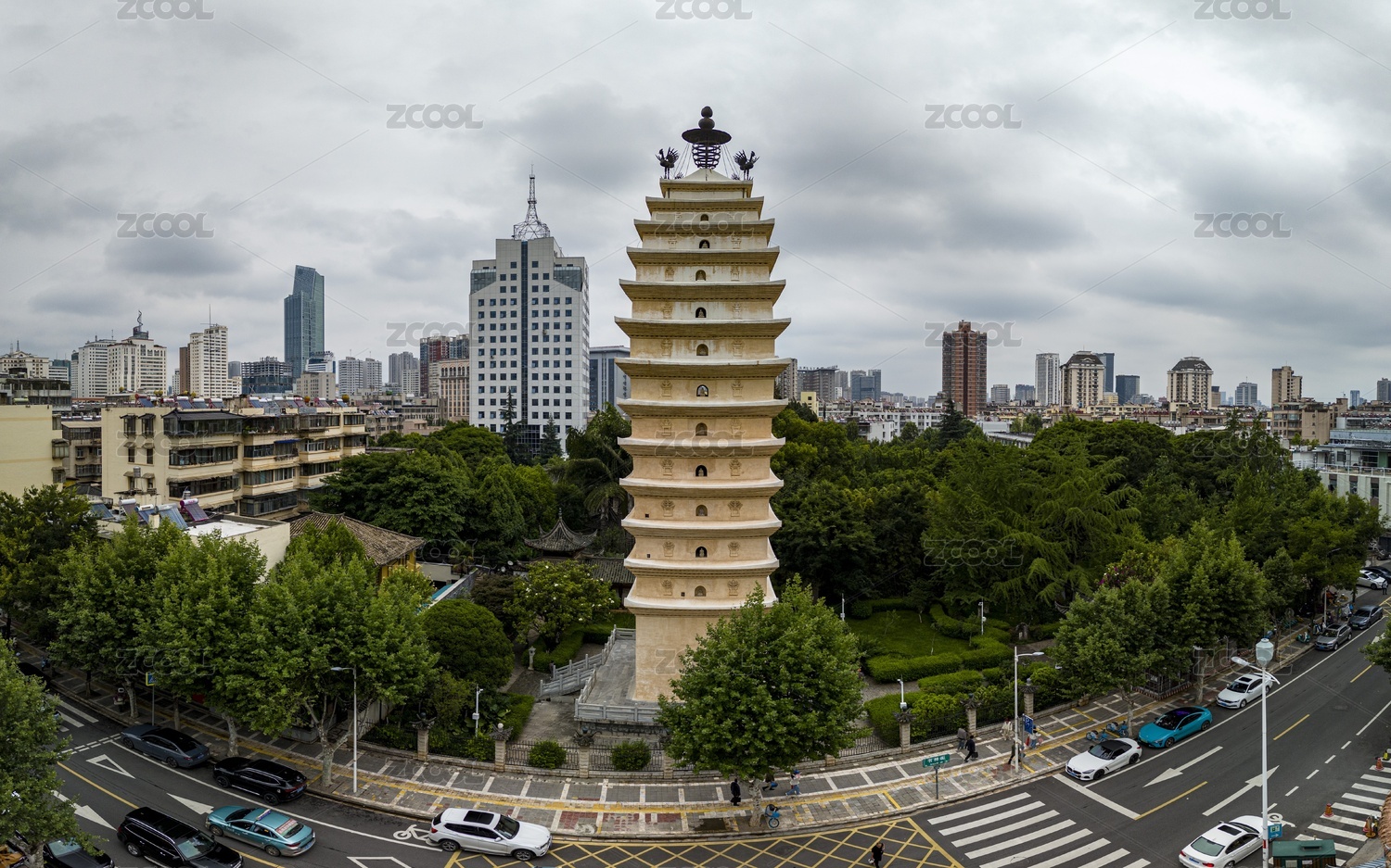 云南昆明东西寺塔惠光寺塔航拍城市古建筑