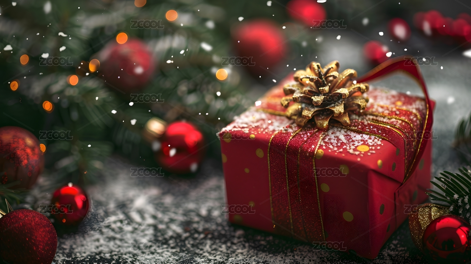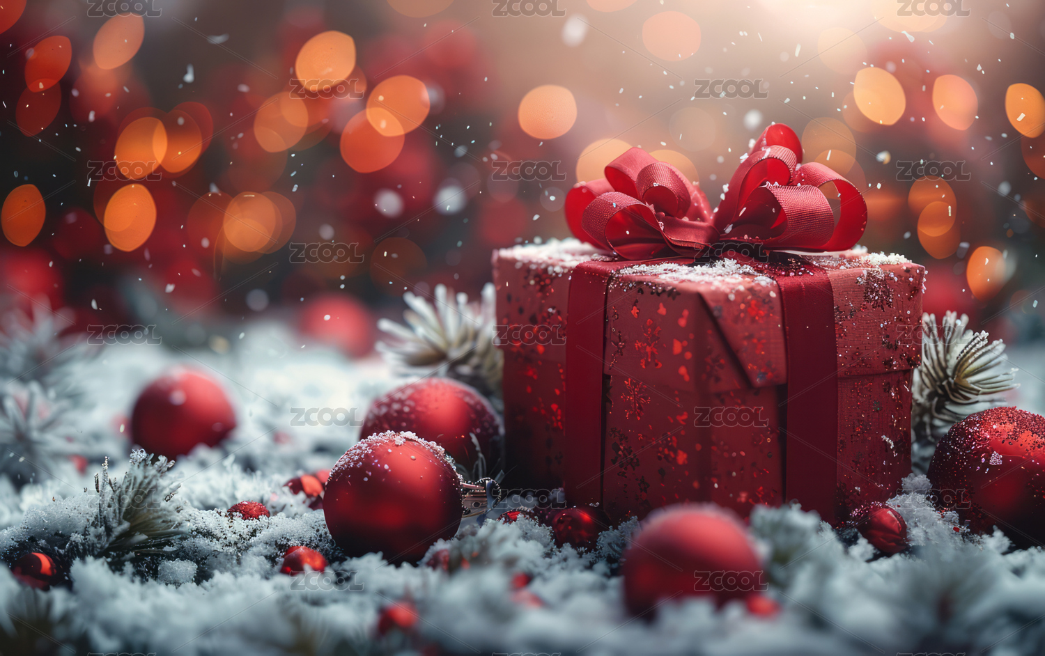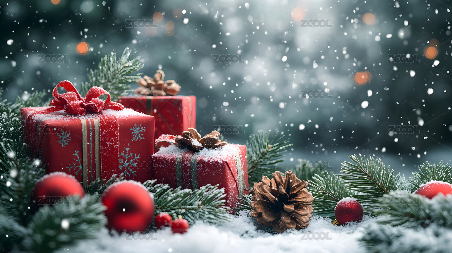 圣诞节,礼物,红色,包装,雪,冬日,节日,装饰,松树,圣诞树