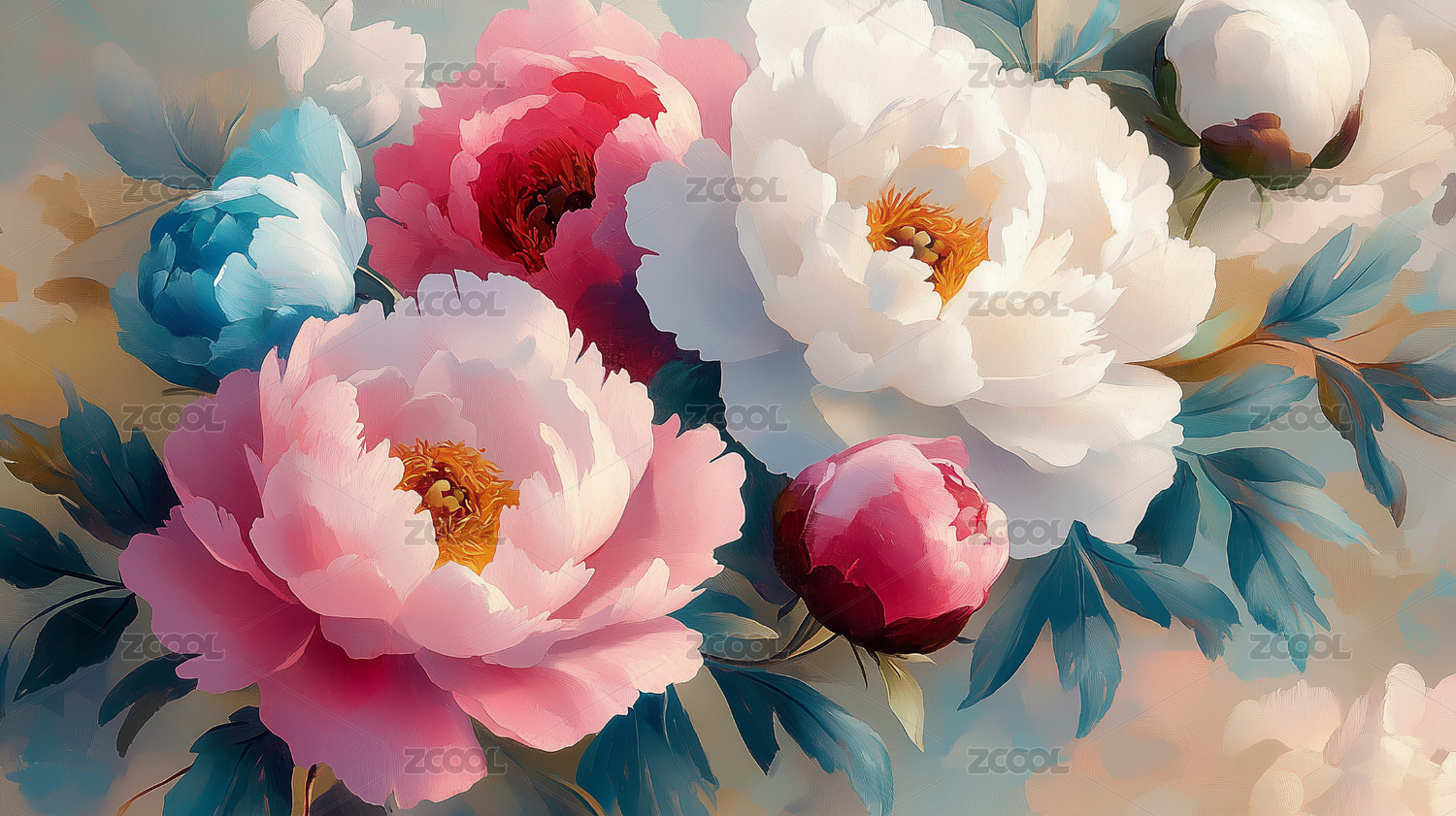 复古怀旧牡丹花卉壁纸背景海报装饰画背景