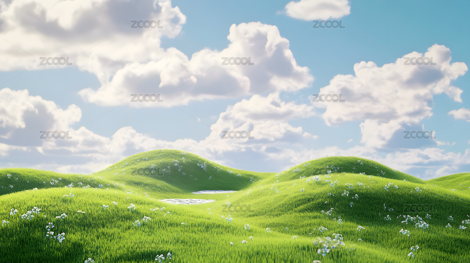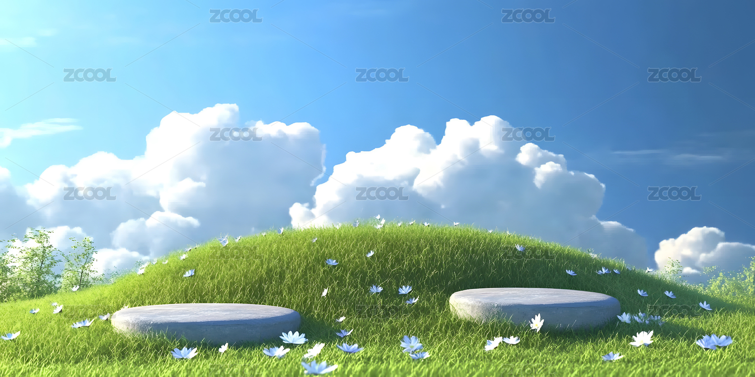 蓝天,草地,风景,背景,天空,白云,花,春天