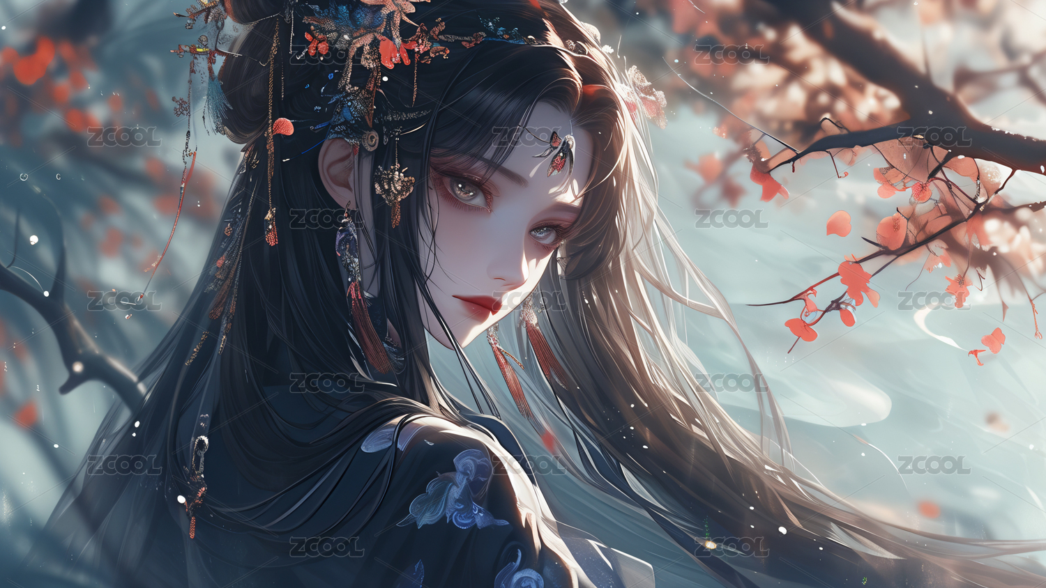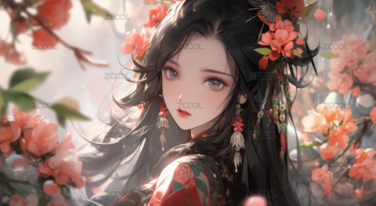国潮风,美女,女孩,女人,少女,插画,卡通,人