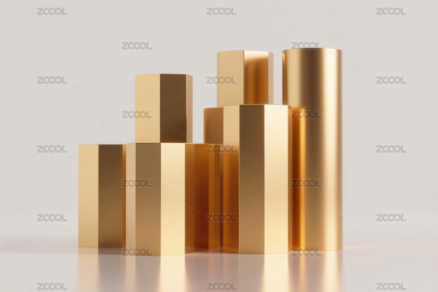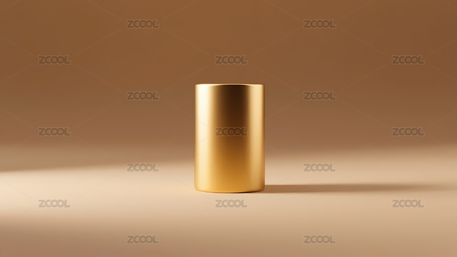 暖黄色背景中有金色的柱子展示台 3D渲染