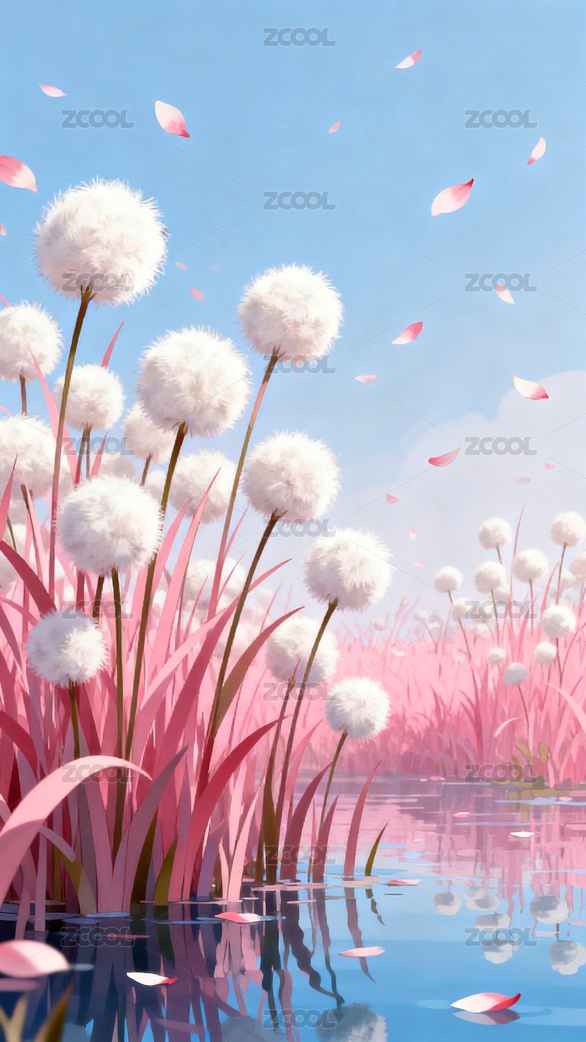 3D卡通春天草地可爱粉色花朵三维自然背景