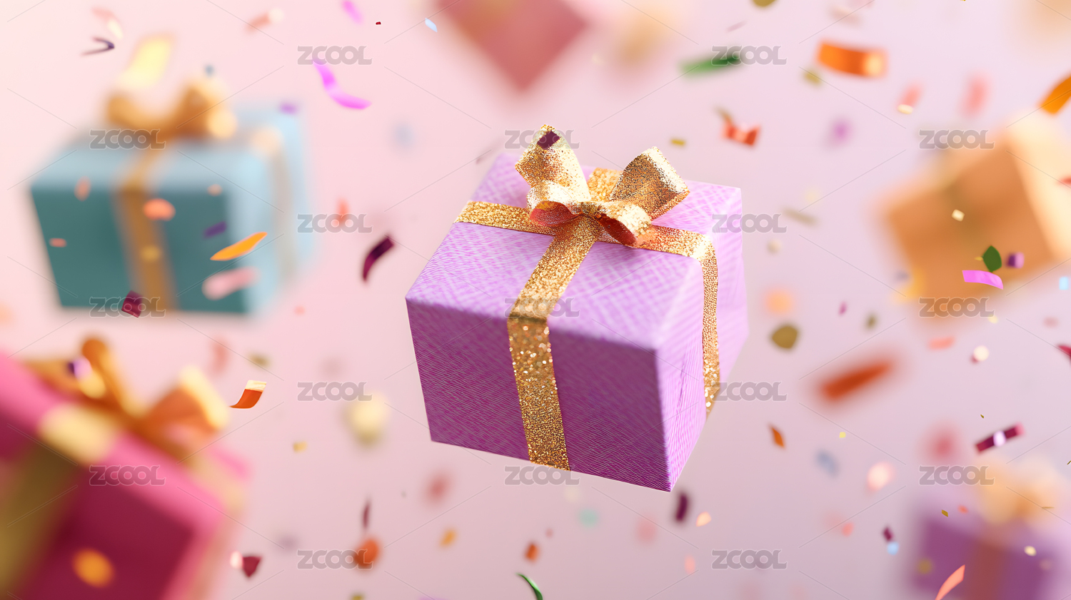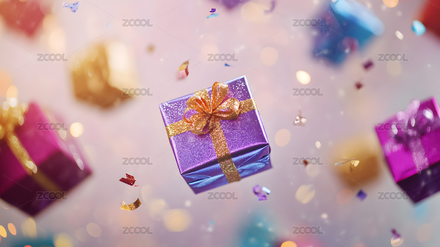 缤纷礼物庆祝时刻飞舞的礼品盒