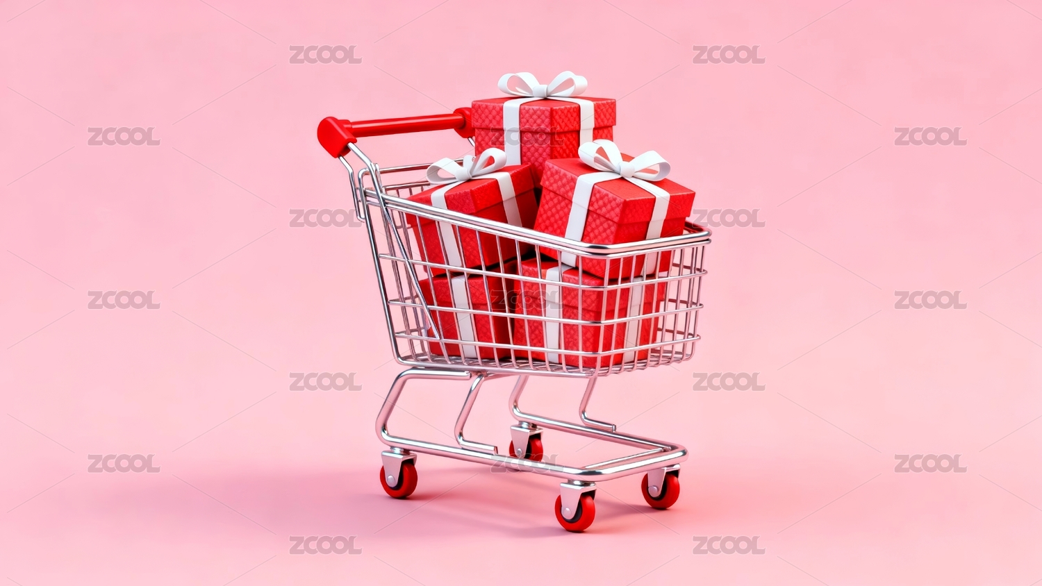 一辆装满礼盒的购物车