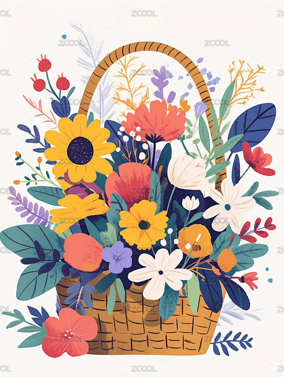 蓝色背景下篮子里粉红色花朵的特写镜头