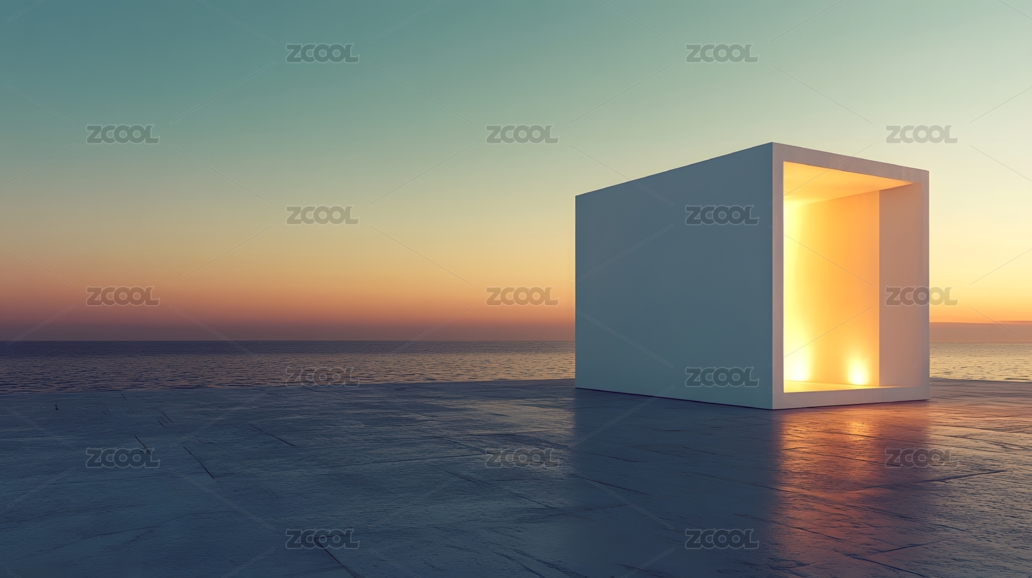 极简主义建筑日落景观