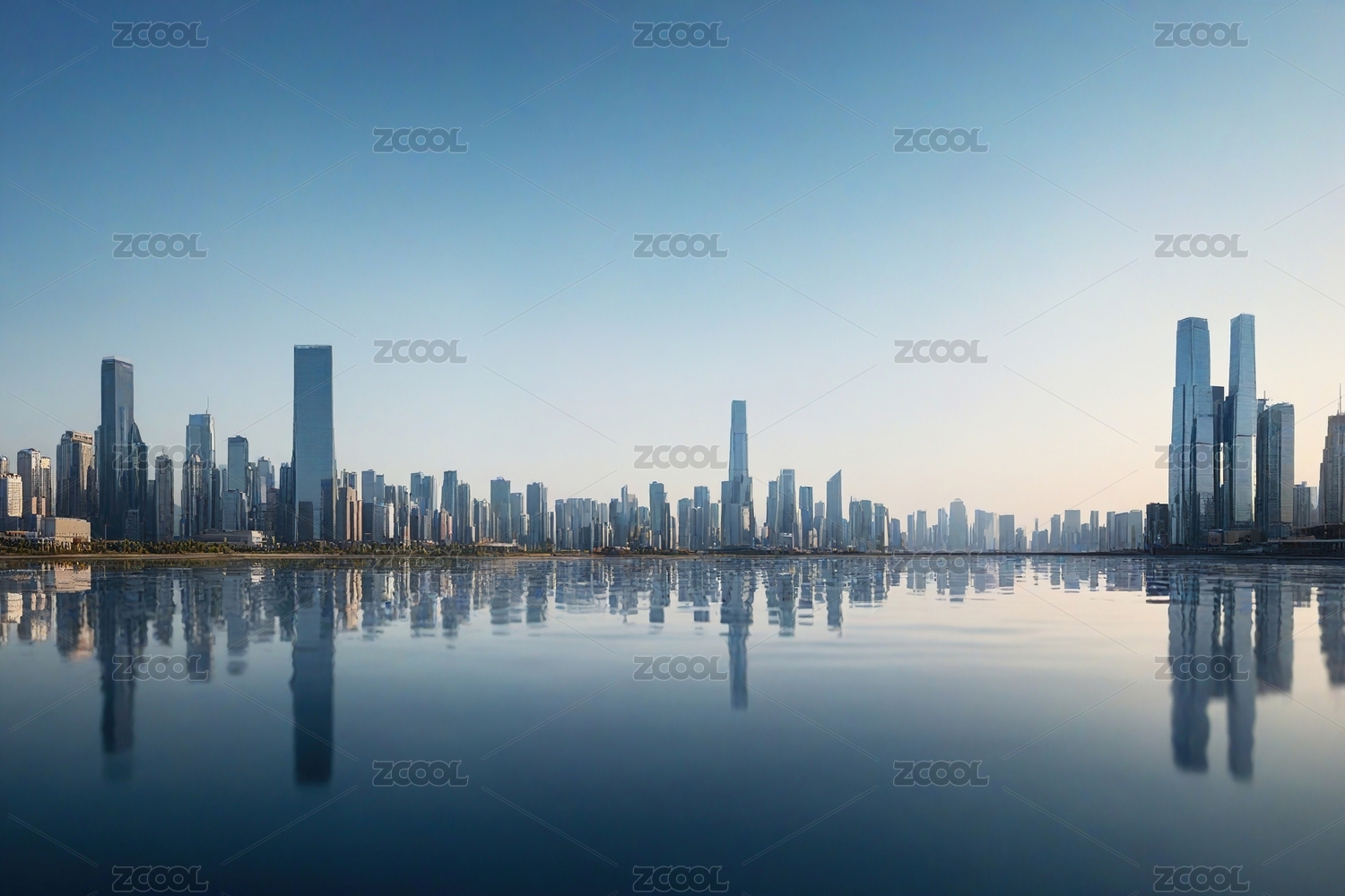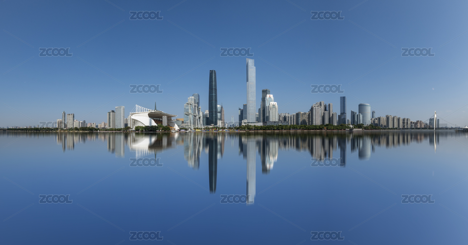 中国广东广州天河珠江新城CBD建筑群创意水面倒影