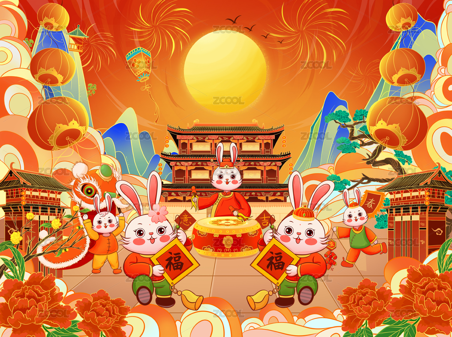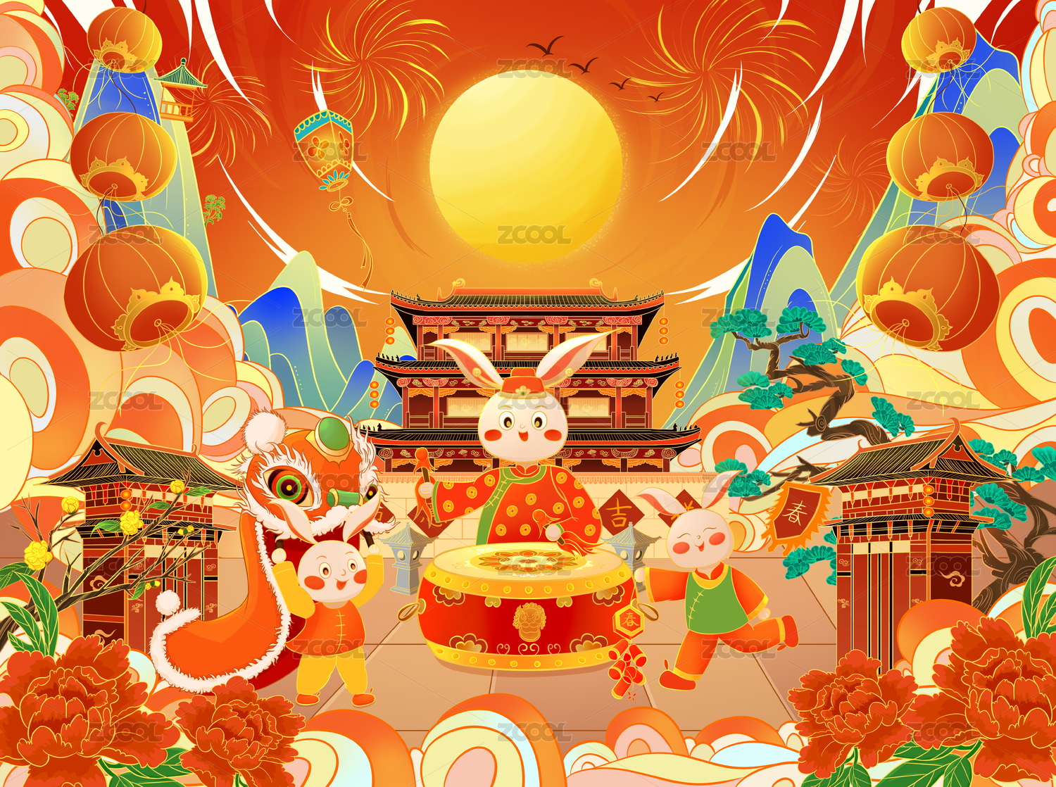 兔年国潮插画