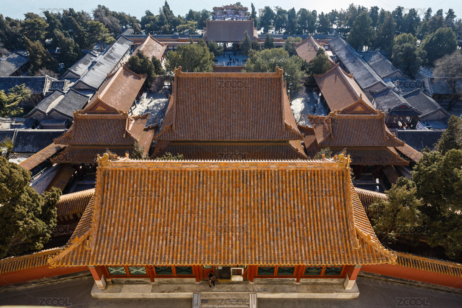 中国北京市颐和园排云殿古建筑和昆明湖风光