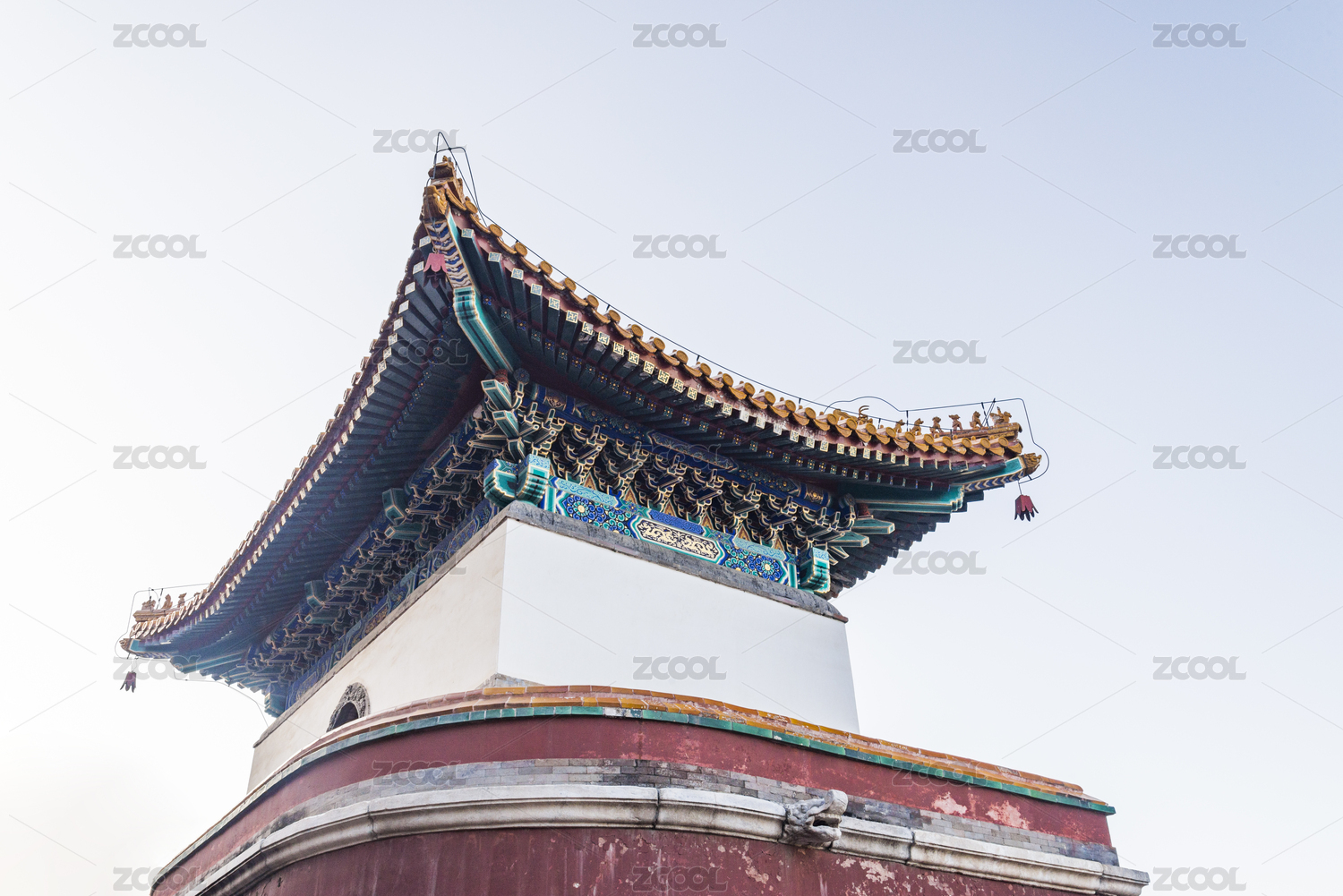中国北京颐和园四大部洲红墙琉璃屋顶