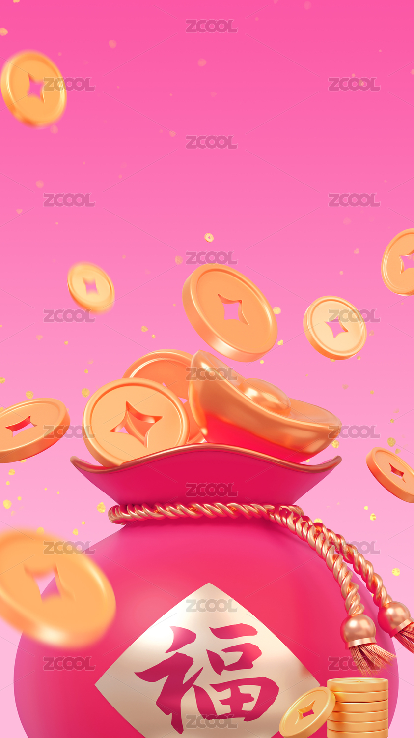 3d新年春节金融理财投资红金色海报插画