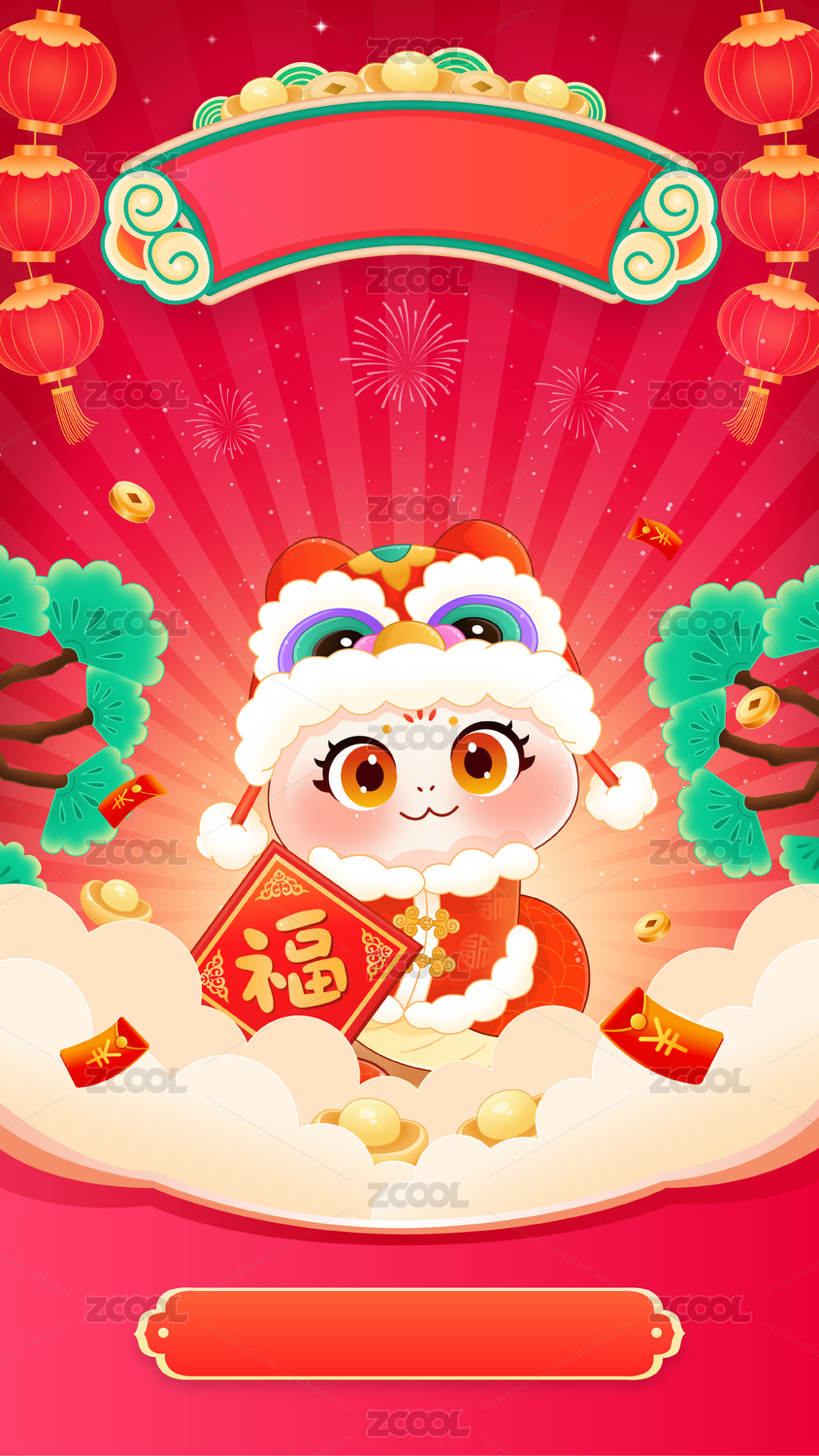 国潮风新年春节蛇年海报插画