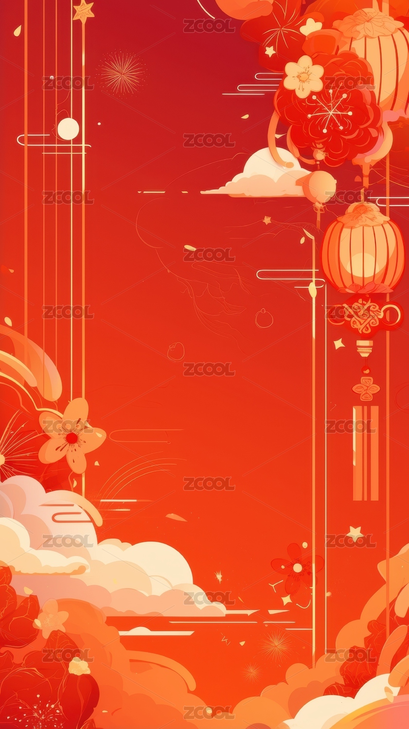 竖版2025蛇年国潮中式新年春节喜庆背景