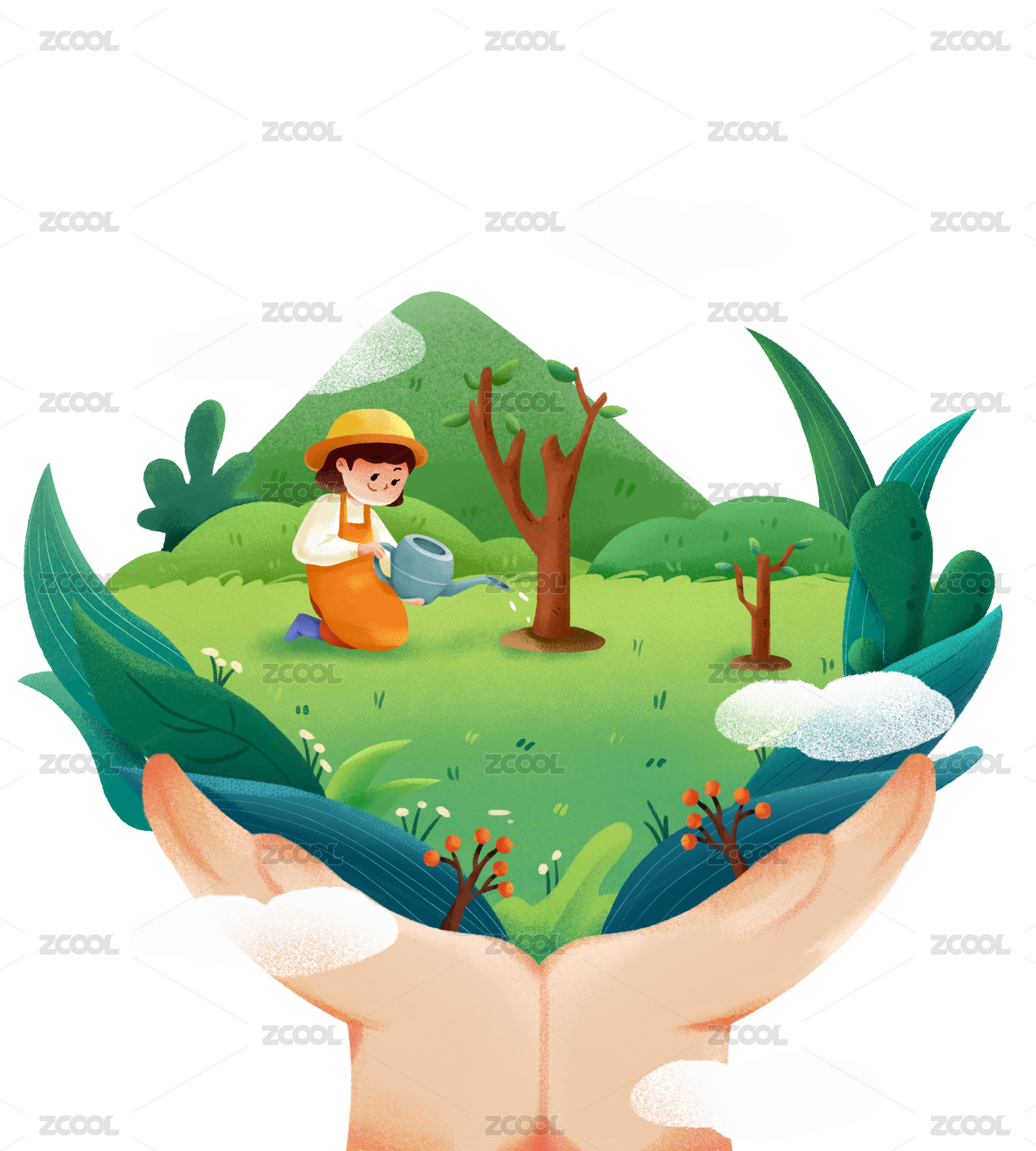 小清新绿色植树节环保插画