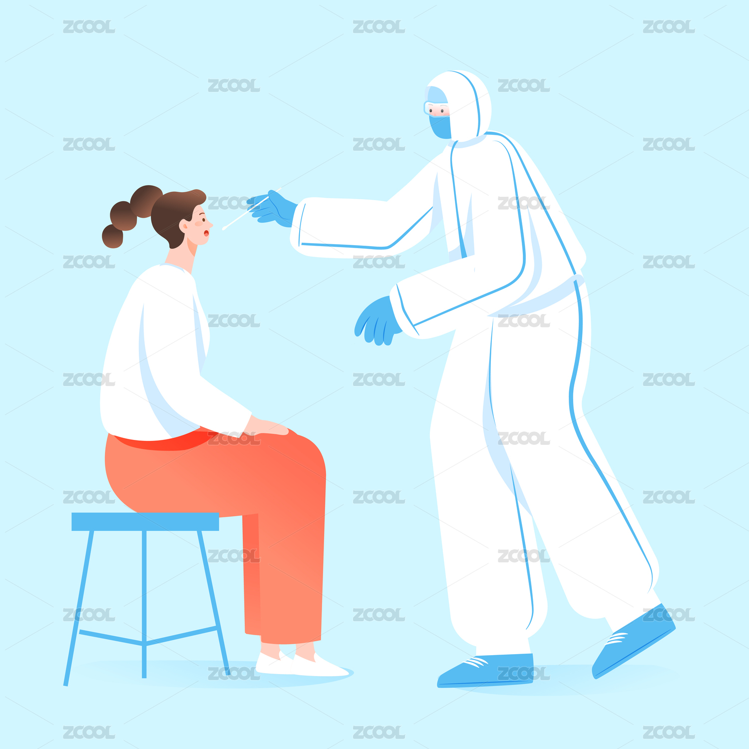 抗击疫情戴口罩做核酸的医护人员和男孩