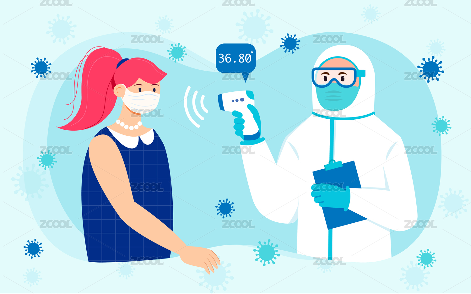 抗疫防控情人物量体温插画健康安全抗疫海报