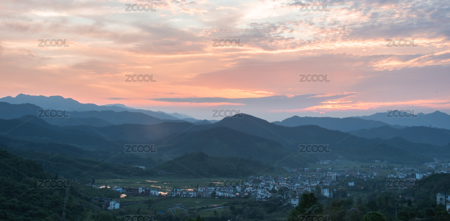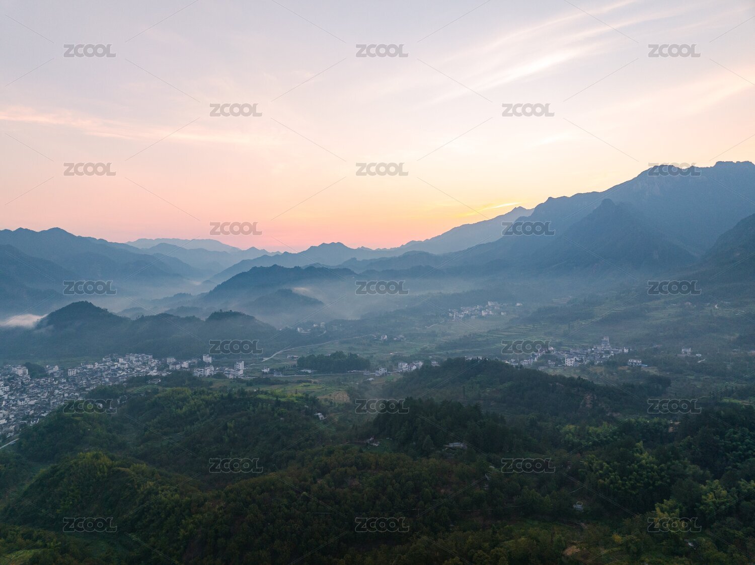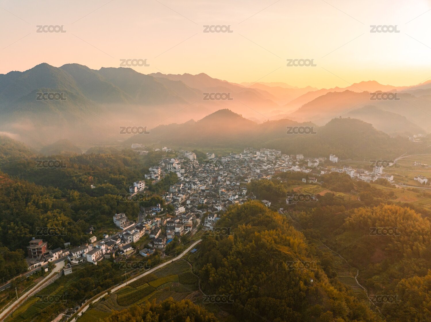 杭州桐庐深澳古村清晨日出全景宽幅航拍
