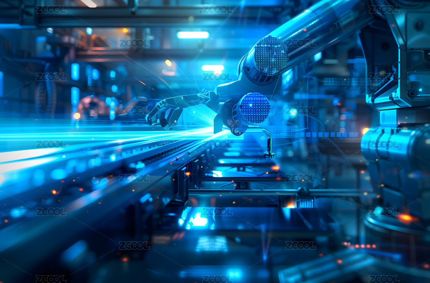 工厂流水线上的智能机械臂