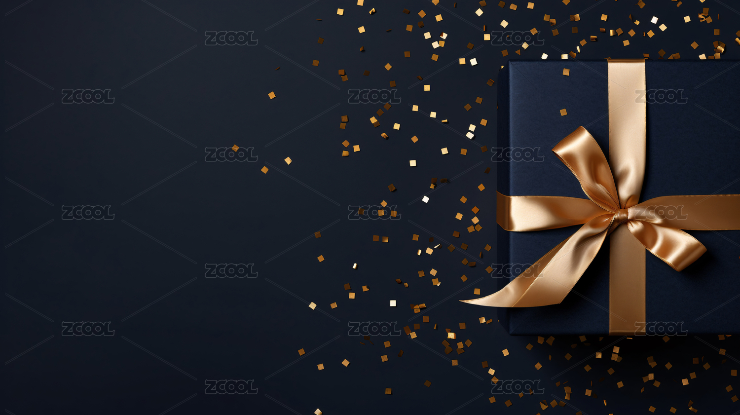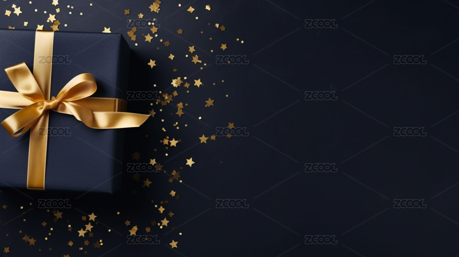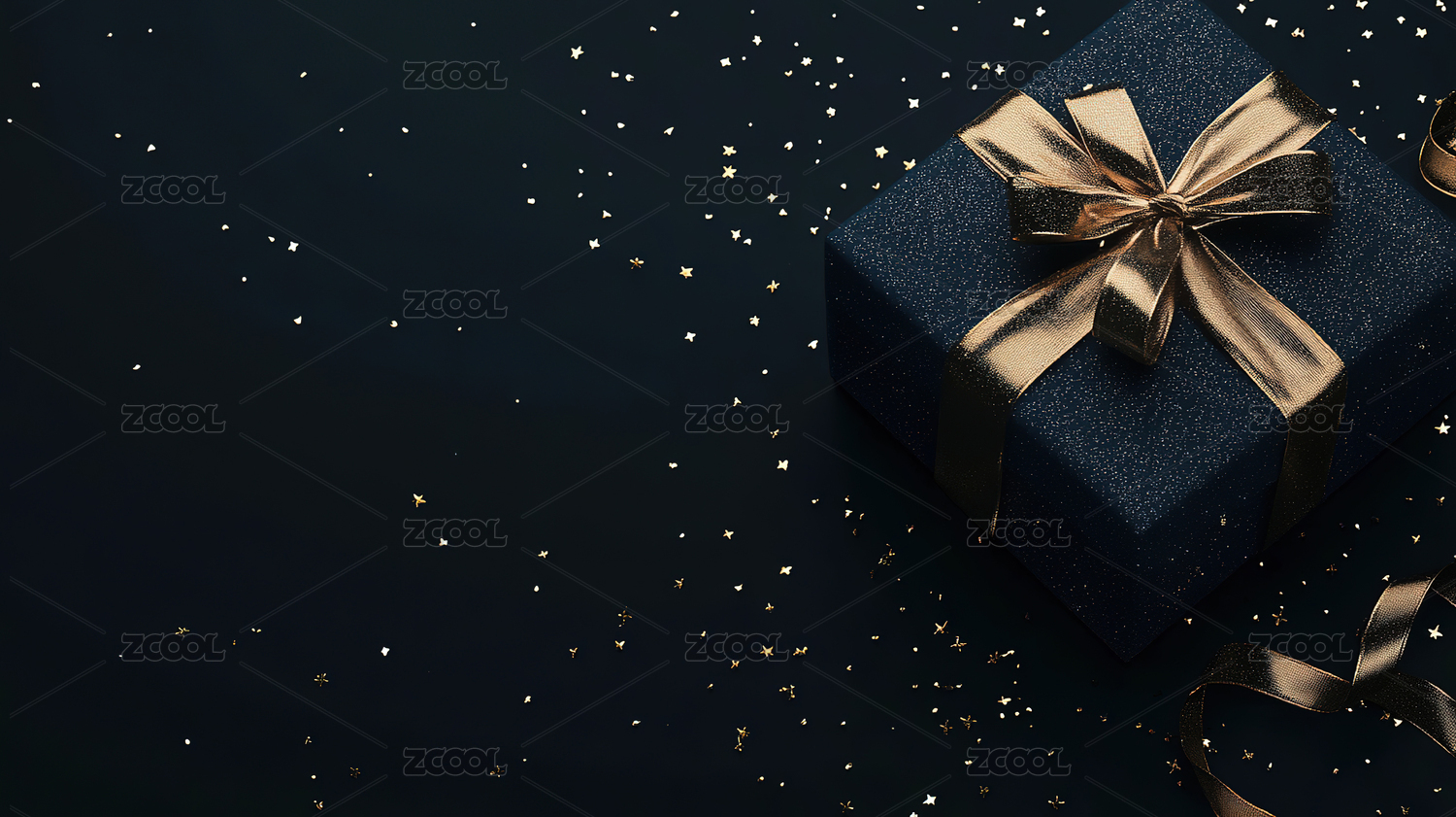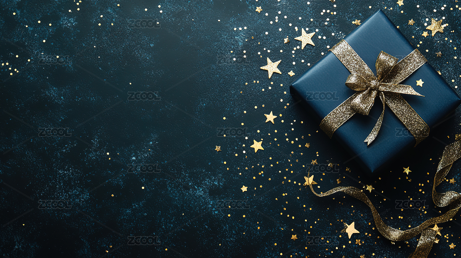 深蓝色礼品盒俯视图情人节惊喜礼盒概念插图