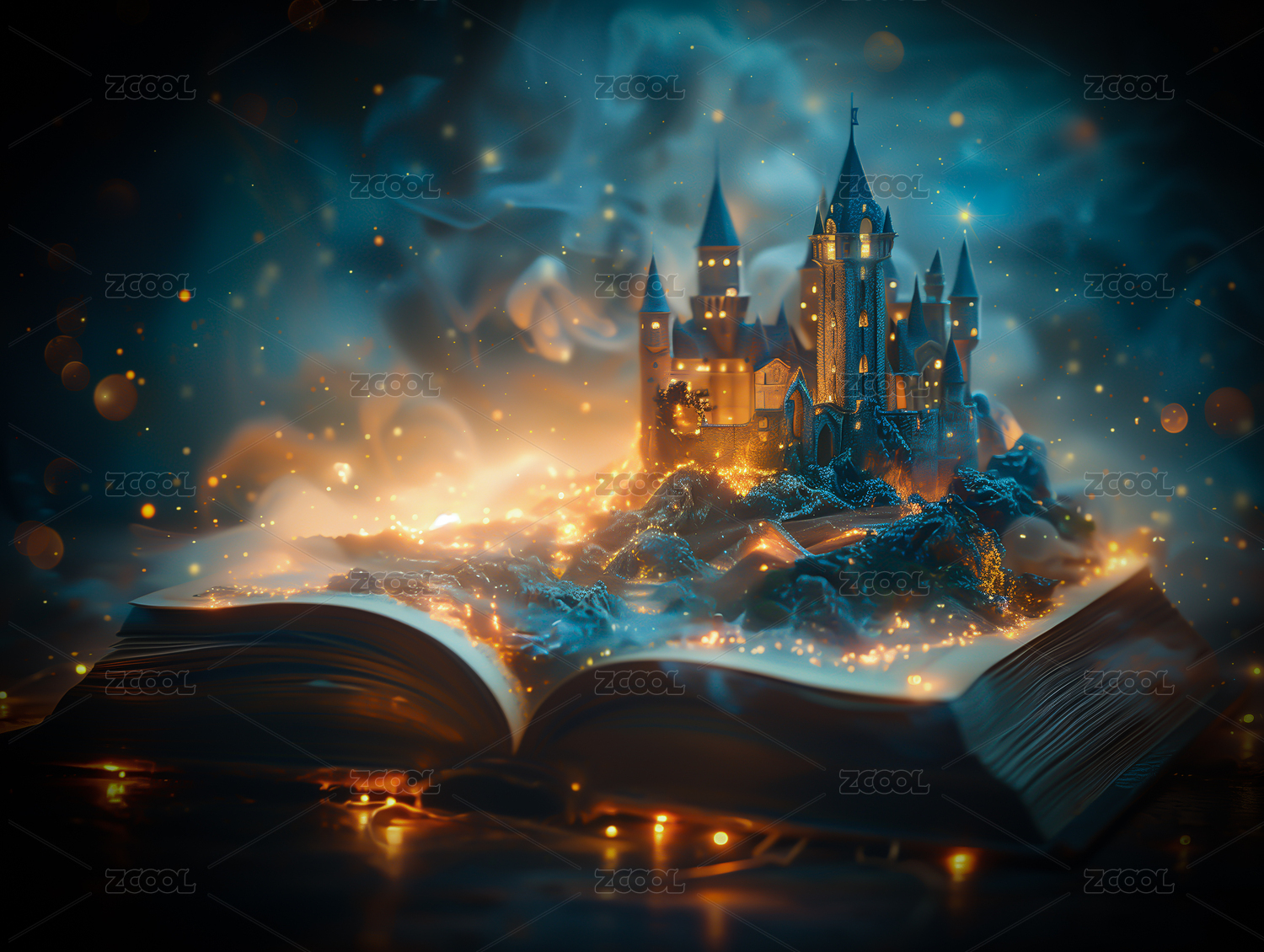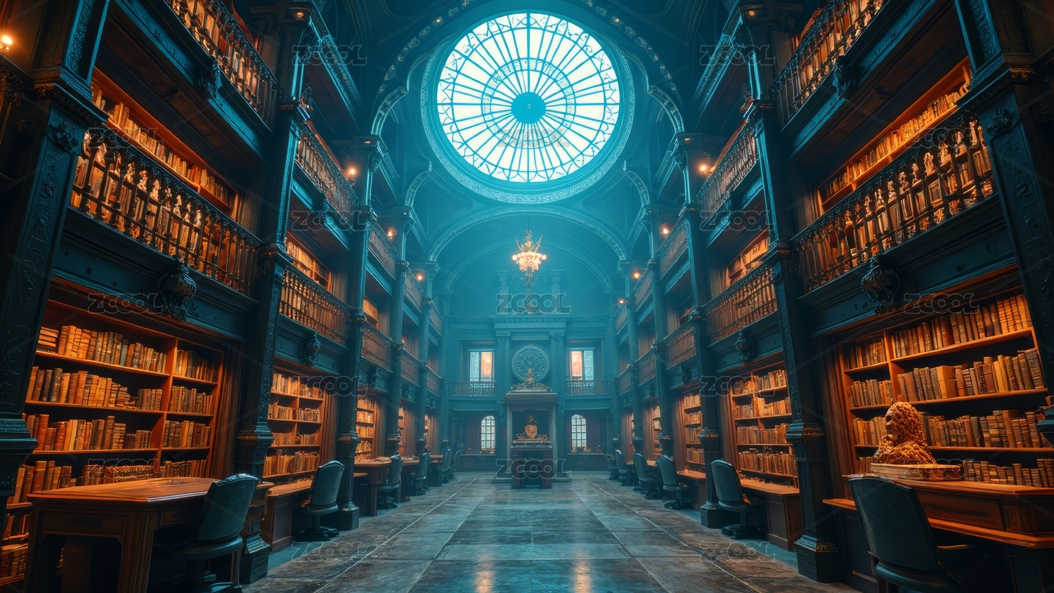 森林图书馆书籍魔法魔术暗黑风格奇幻超现实