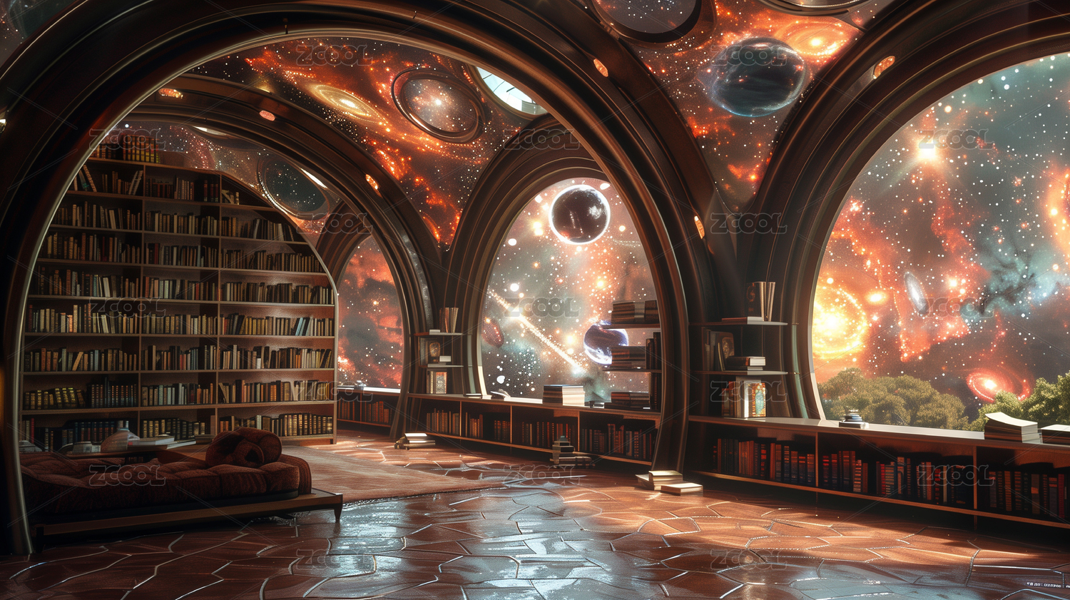 星际图书馆宇宙建筑梦幻AI数字艺术创意设