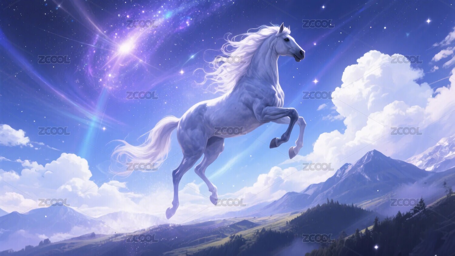 梦幻,白马,骏马,奔腾,粉色,天空,云彩,雪地,飞雪,唯美