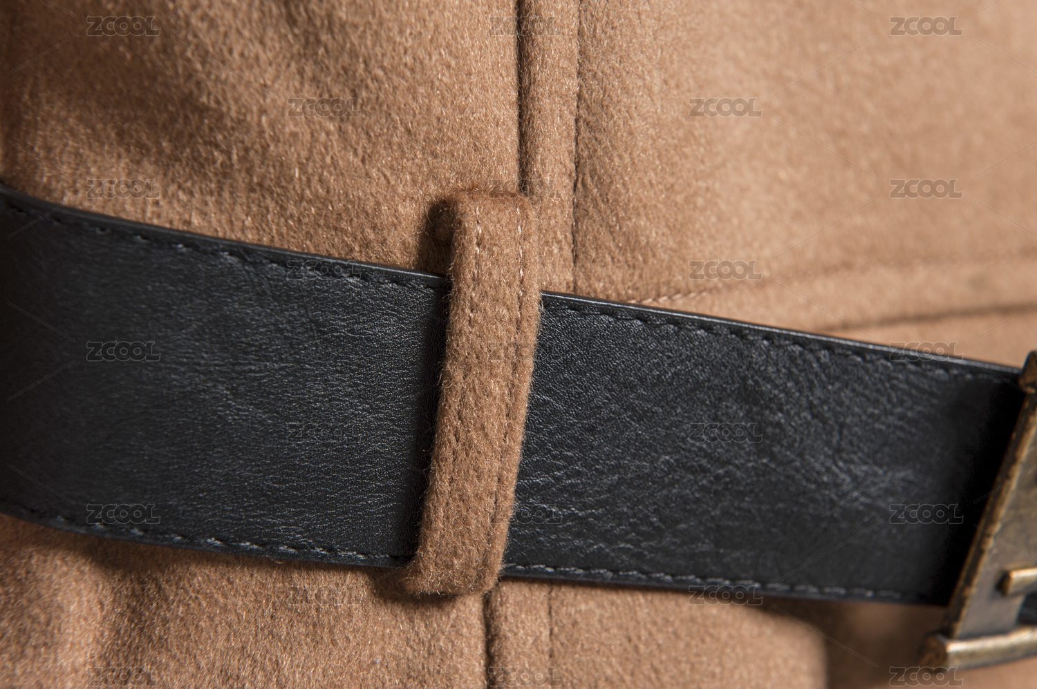 米色外套大衣的黑色真皮腰带