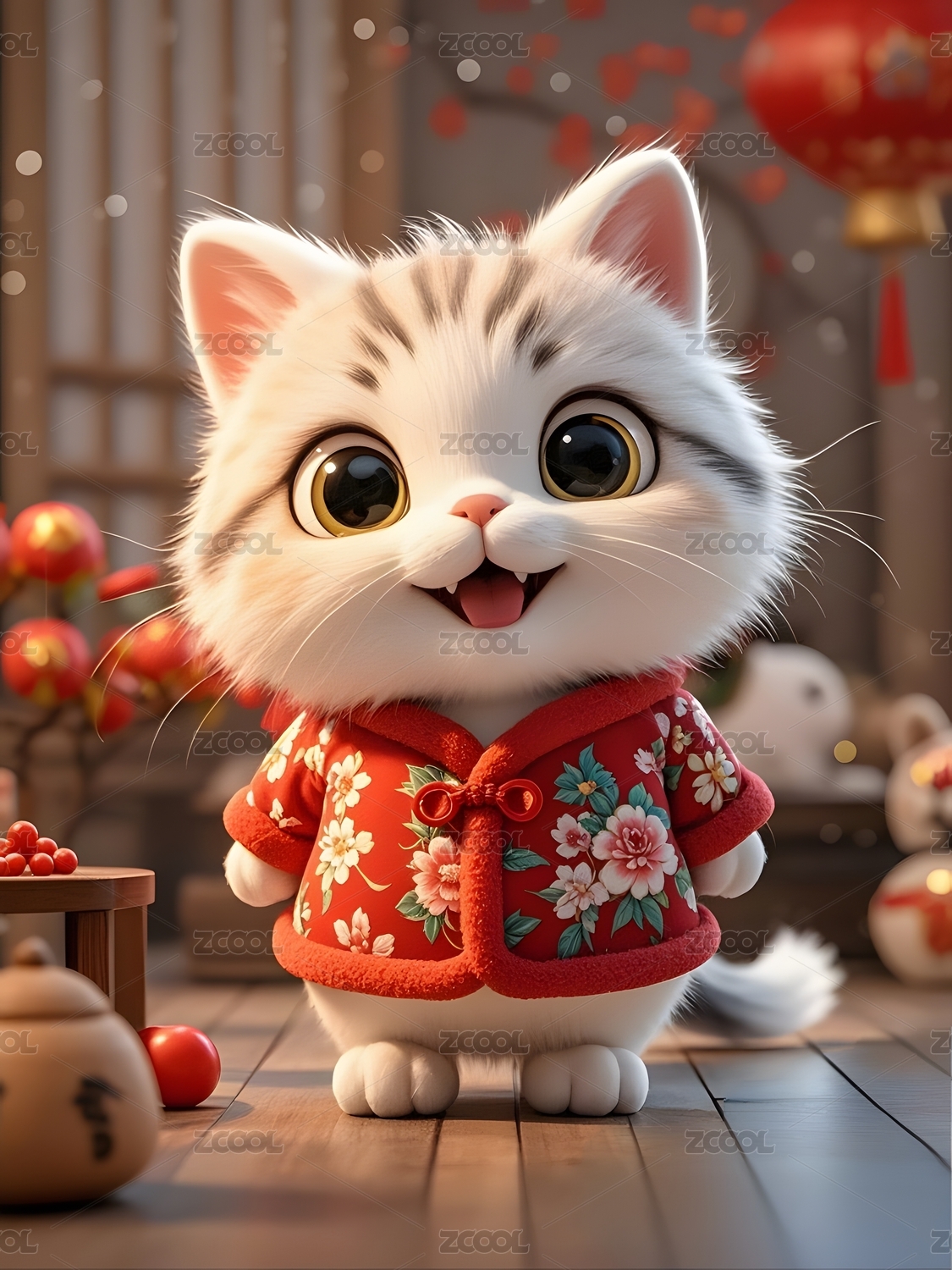 快乐,喜气洋洋,猫,动物,拟人化,中式服装,古风,中国风,国潮,春节