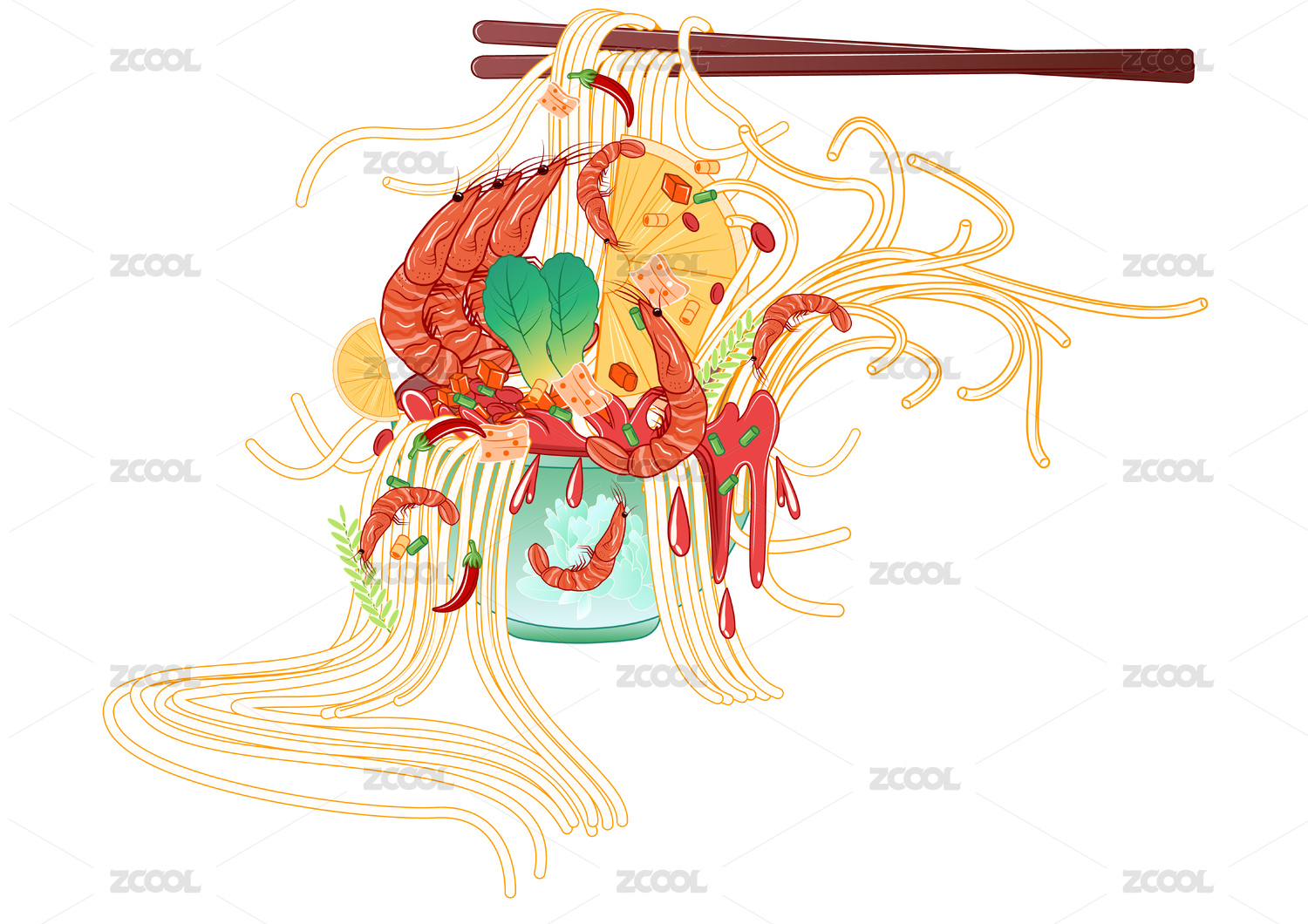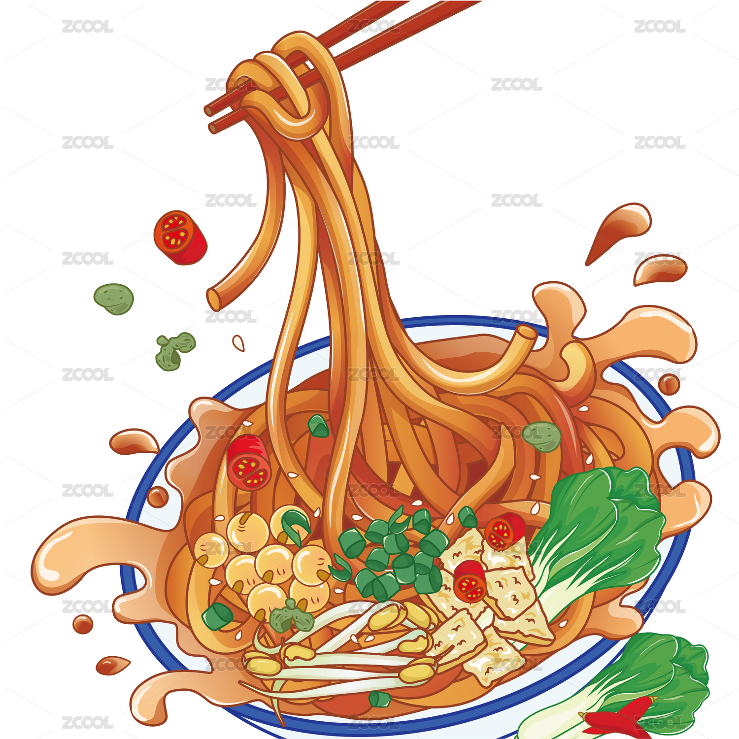 香菇火腿肠碗面食物面条元素美食矢量插画