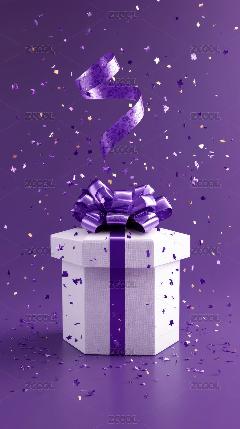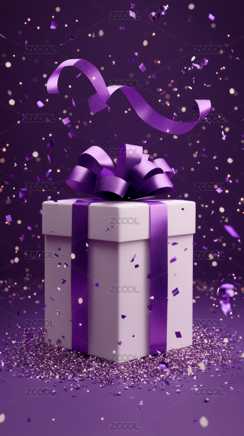 三维,礼品盒,紫色,背景,金色,丝带,节日,庆典,礼物,飘浮
