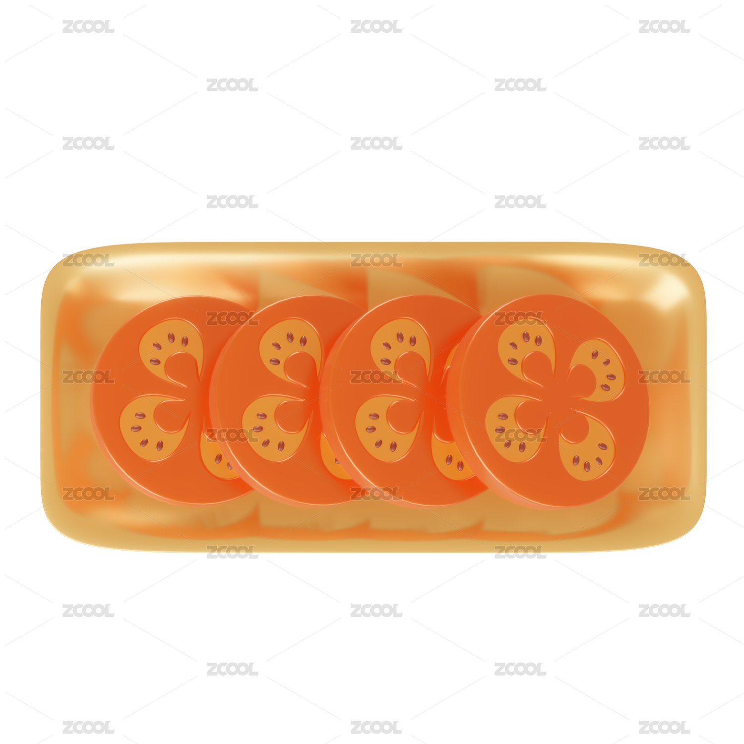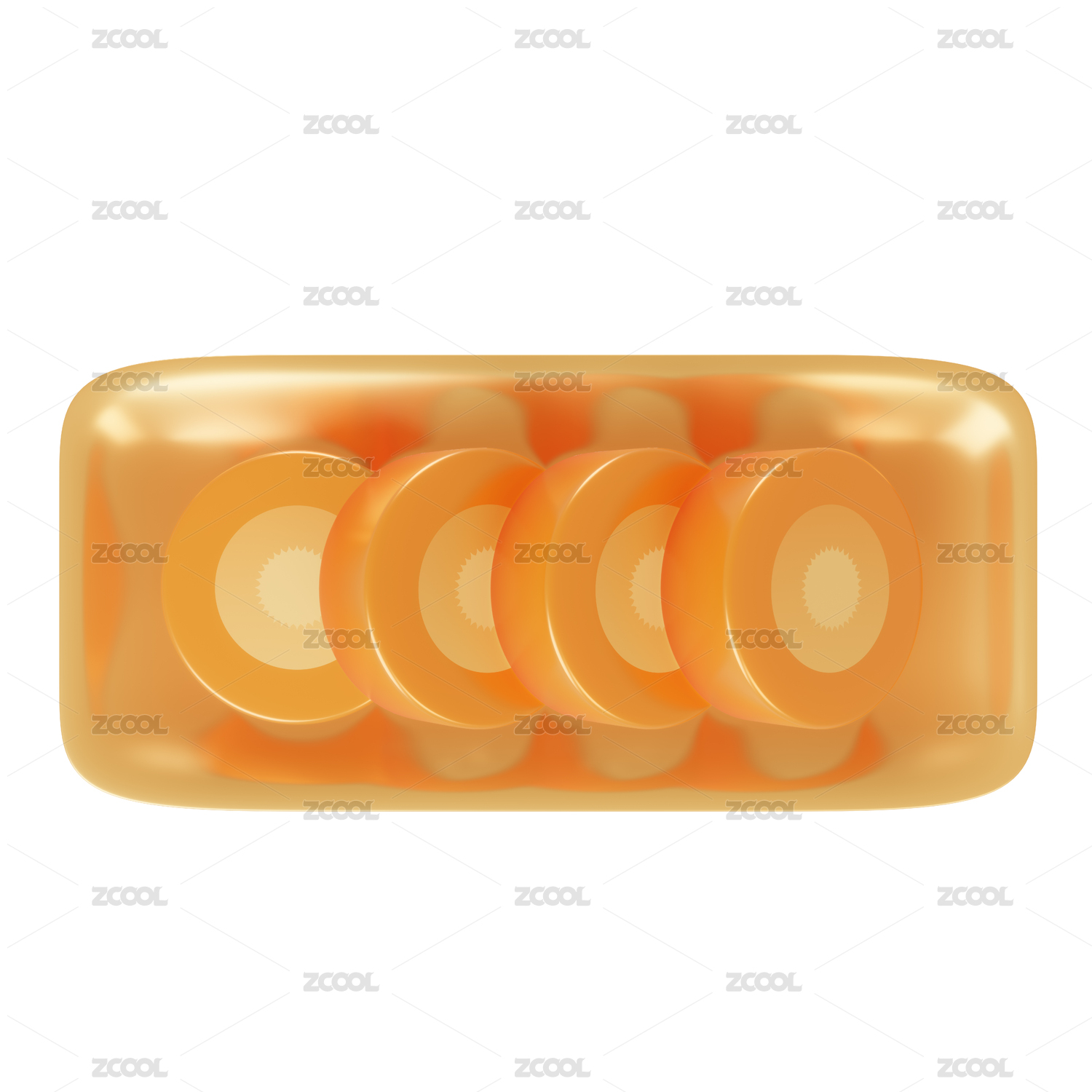 金色盘子装着胡萝卜片的3d火锅食材元素