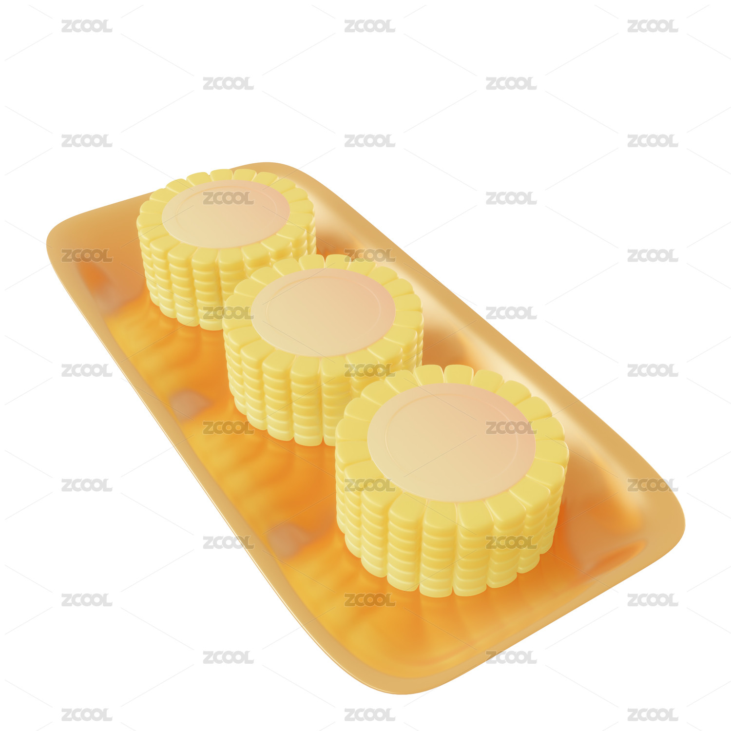 金色盘子装着鸡蛋卷的3d火锅食材元素