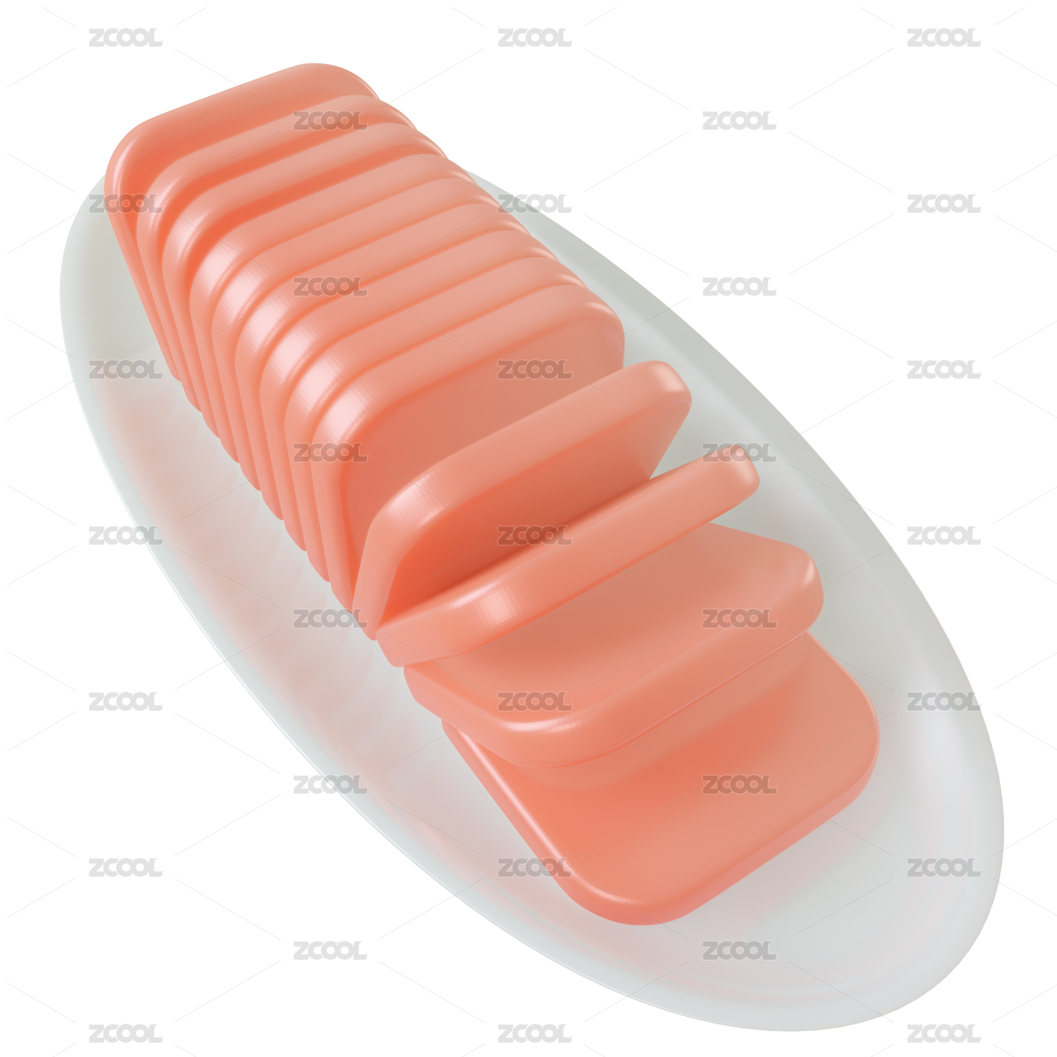 一个白色磁盘装午餐肉的火锅食材3d元素